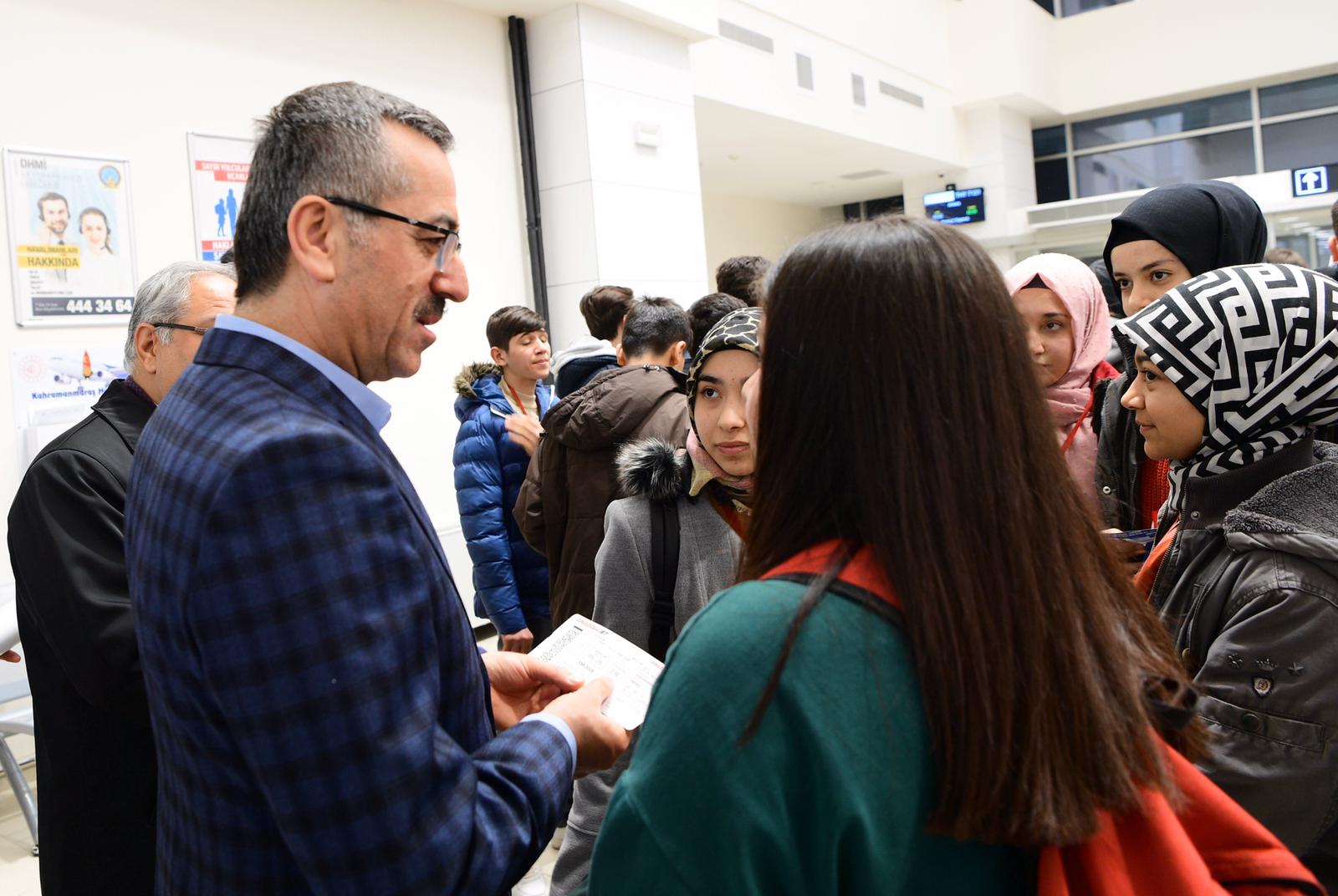Kahramanmaraş Havalimanı’nda gerçekleştirilen uğurlama törenine Kahramanmaraş Büyükşehir Belediye Başkanı Hayrettin Güngör, İl Milli Eğitim Müdürü Cemal Yılmaz, Kahramanmaraş Ticaret ve Sanayi Odası Başkanı Serdar Zabun ile öğrenciler ve velileri katıldı.