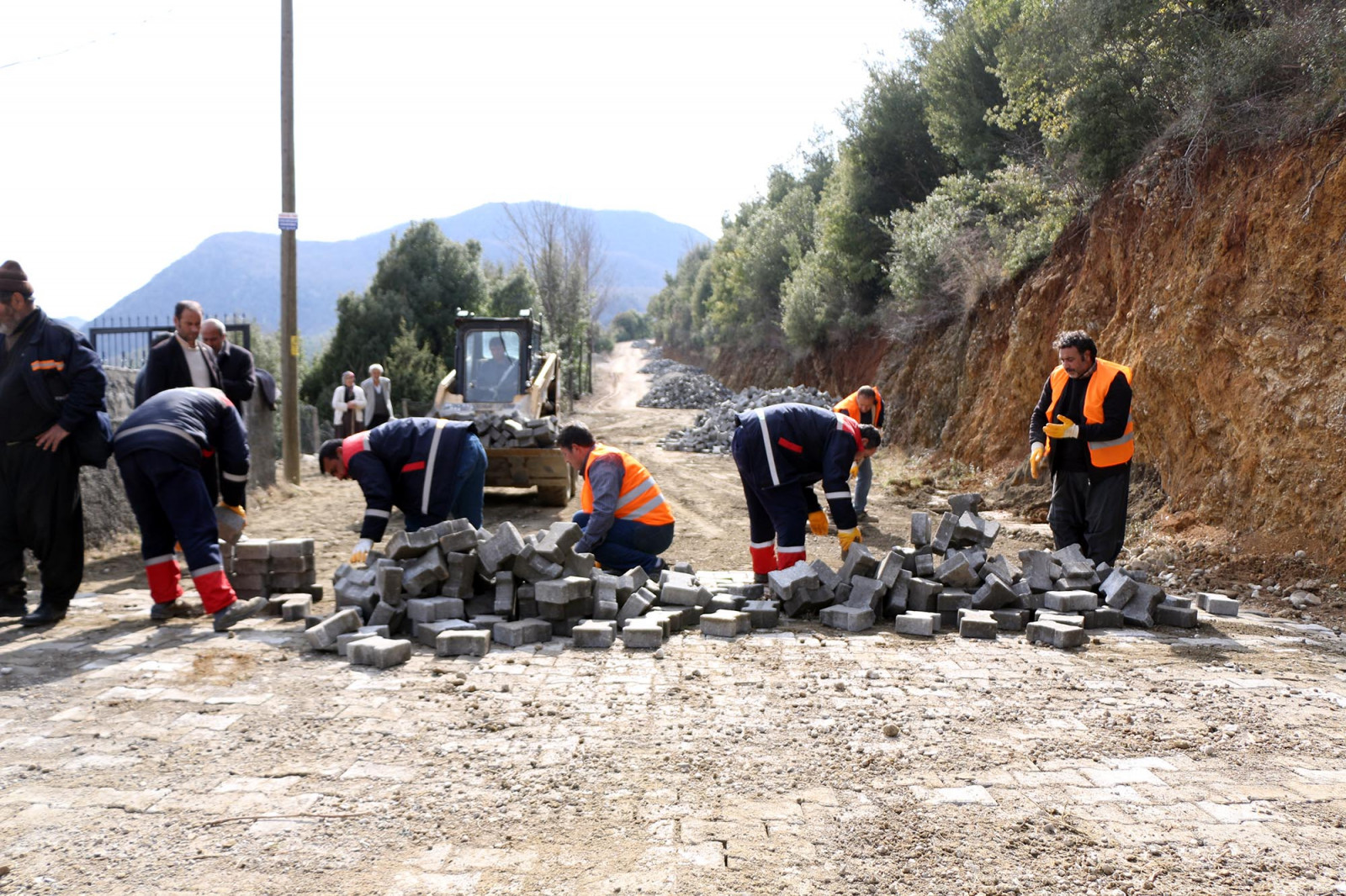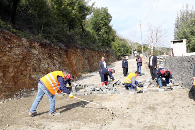 Büyükşehir Belediyesi yol yapım ve onarım çalışmaları kapsamında Andırın İlçesi Efirağızlı Mahallesi’nde kilit parke döşemesi yapıyor.