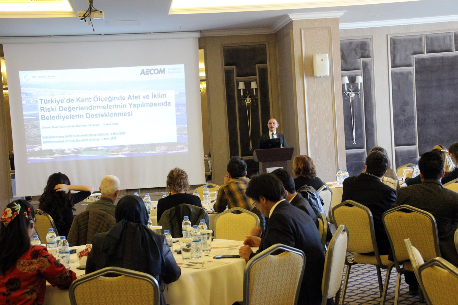 Kahramanmaraş Büyükşehir Belediyesi ev sahipliğinde Dünya Bankası ve İller Bankasının birlikte yürüttüğü “Kent Ölçeğinde Afet ve İklim Riski Değerlendirmelerinin Yapılmasında Belediyelerin Desteklenmesine Yönelik Teknik Destek Projesi” çalıştayı başladı.