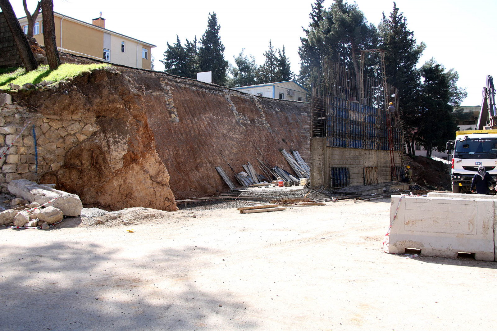Kahramanmaraş Büyükşehir Belediyesi Onikişubat İlkokulu’nun çöken istinat duvarının yapımına başladı.