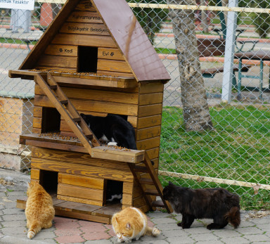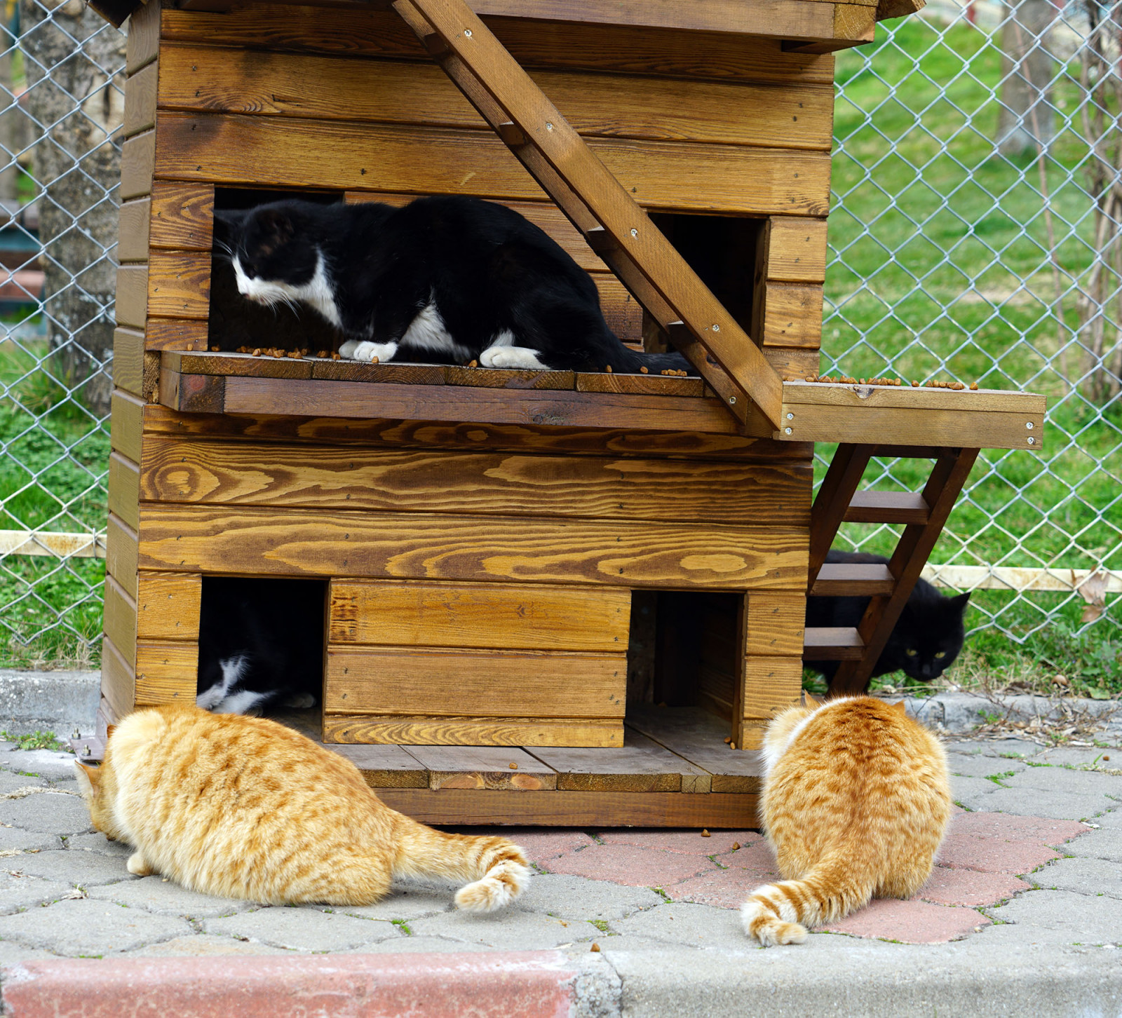 Sıcak ve soğuk havalarda kedilerin sığınabileceği bir alan olarak tasarlanan kulübeler dış hava koşullarına dayanıklı olduğu kadar estetik görünümüyle de dikkat çekiyor.
