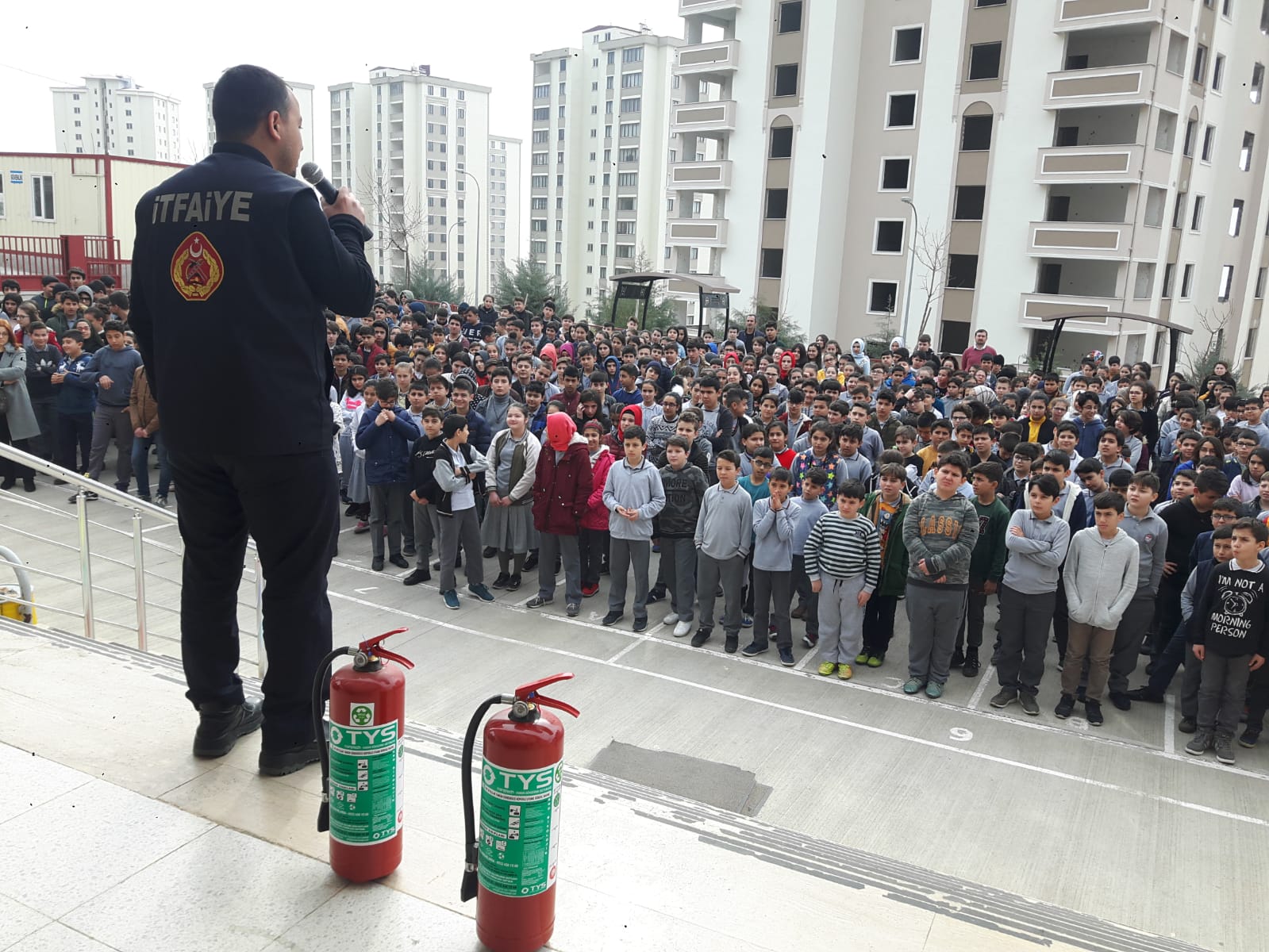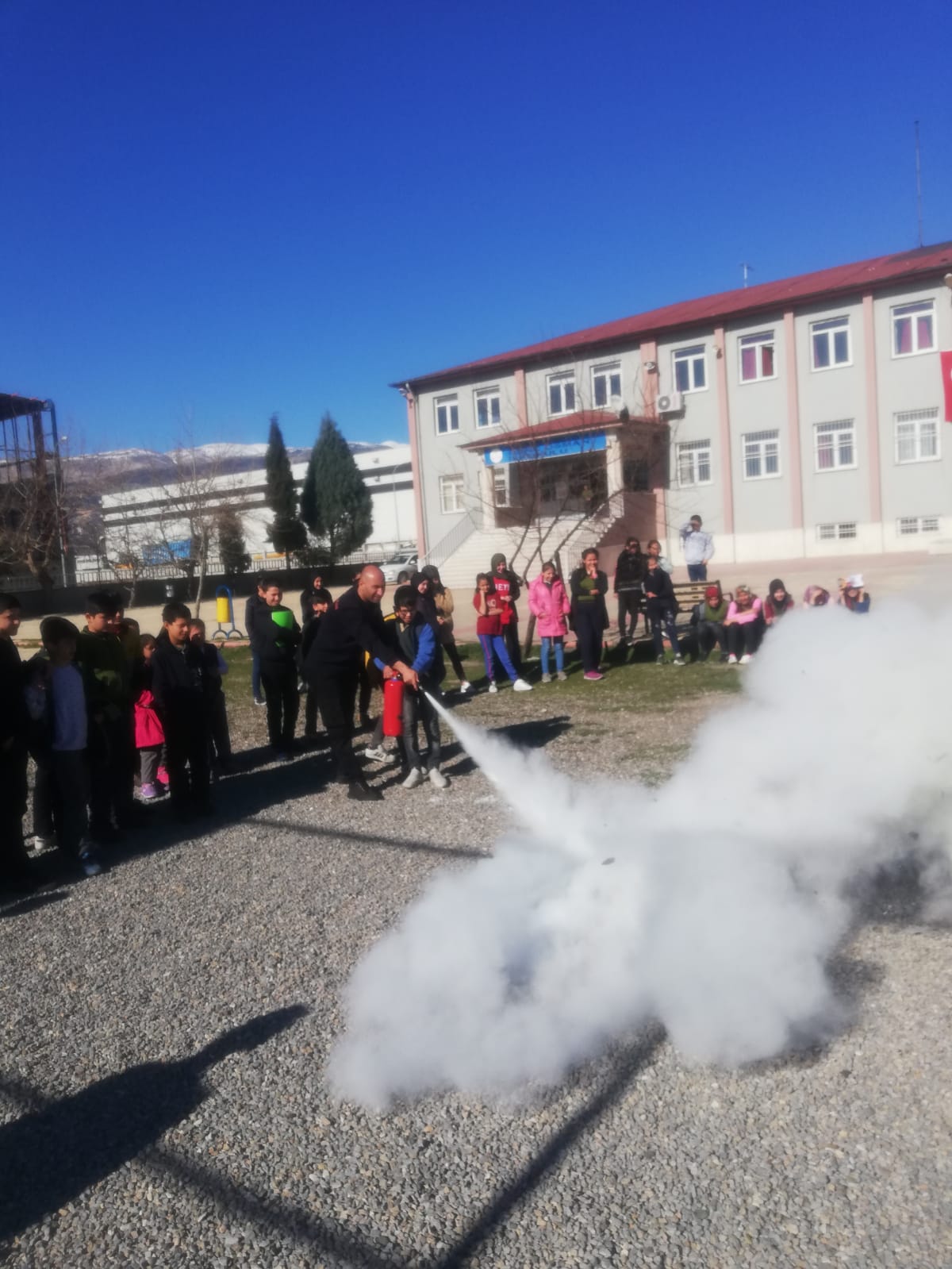 Ayrıca eğitim programlarında öğrencilerin soruları da cevaplandırıldı. Yaklaşık 1 saat süren sunum ve teorik anlatımlar sonrası, uygulamalı yangın ve deprem tatbikatı yapıldı. İtfaiye eğitmenlerince yangına ilk müdahale ve söndürme cihazlarının kullanımı gösterildi.