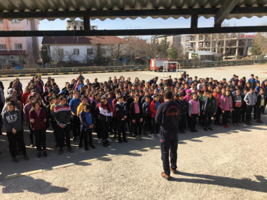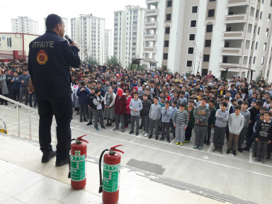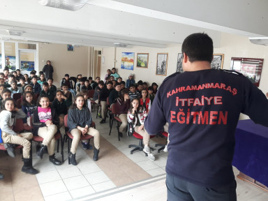 Kahramanmaraş Büyükşehir Belediyesi İtfaiye Daire Başkanlığı tarafından okullarda yangın ve deprem zararlarını azaltmaya yönelik farkındalık eğitimleri verildi.