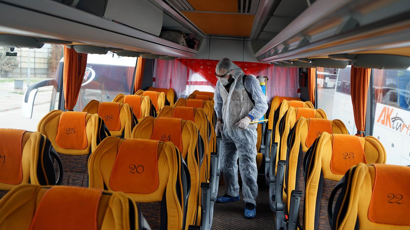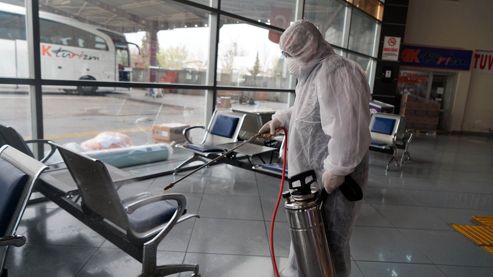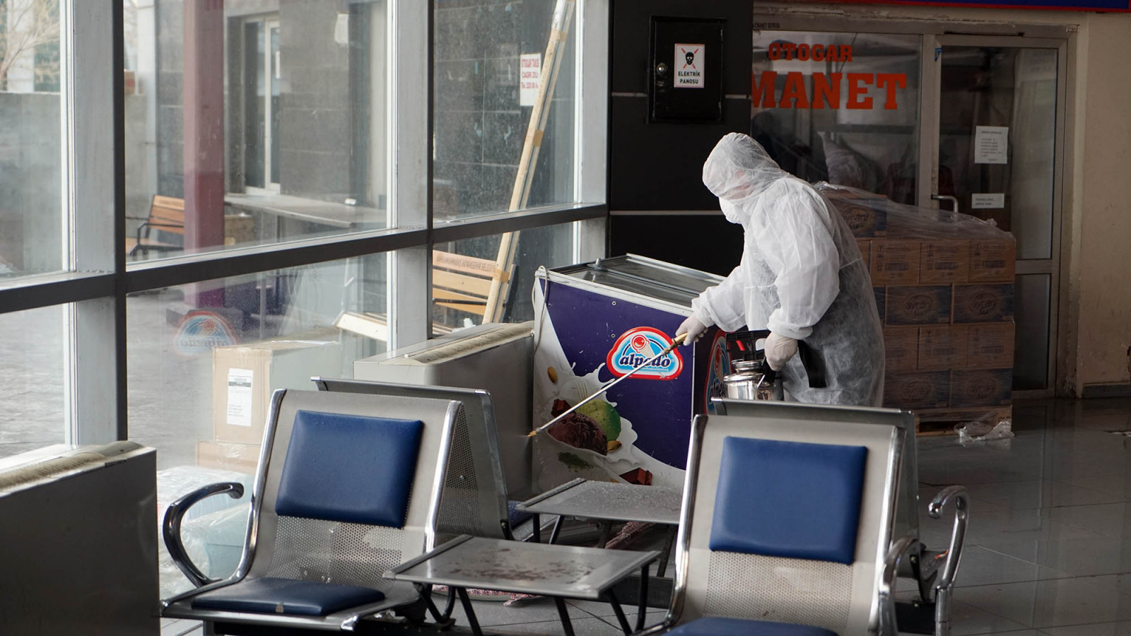 Kahramanmaraş Büyükşehir Belediyesi toplu taşıma araçlarında başlattığı ilaçlama ve dezenfekte çalışmaları kapsamında özel halk otobüslerinin yanı sıra Kahramanmaraş Otogarı’nda da ilaçlama çalışmalarına başladı.