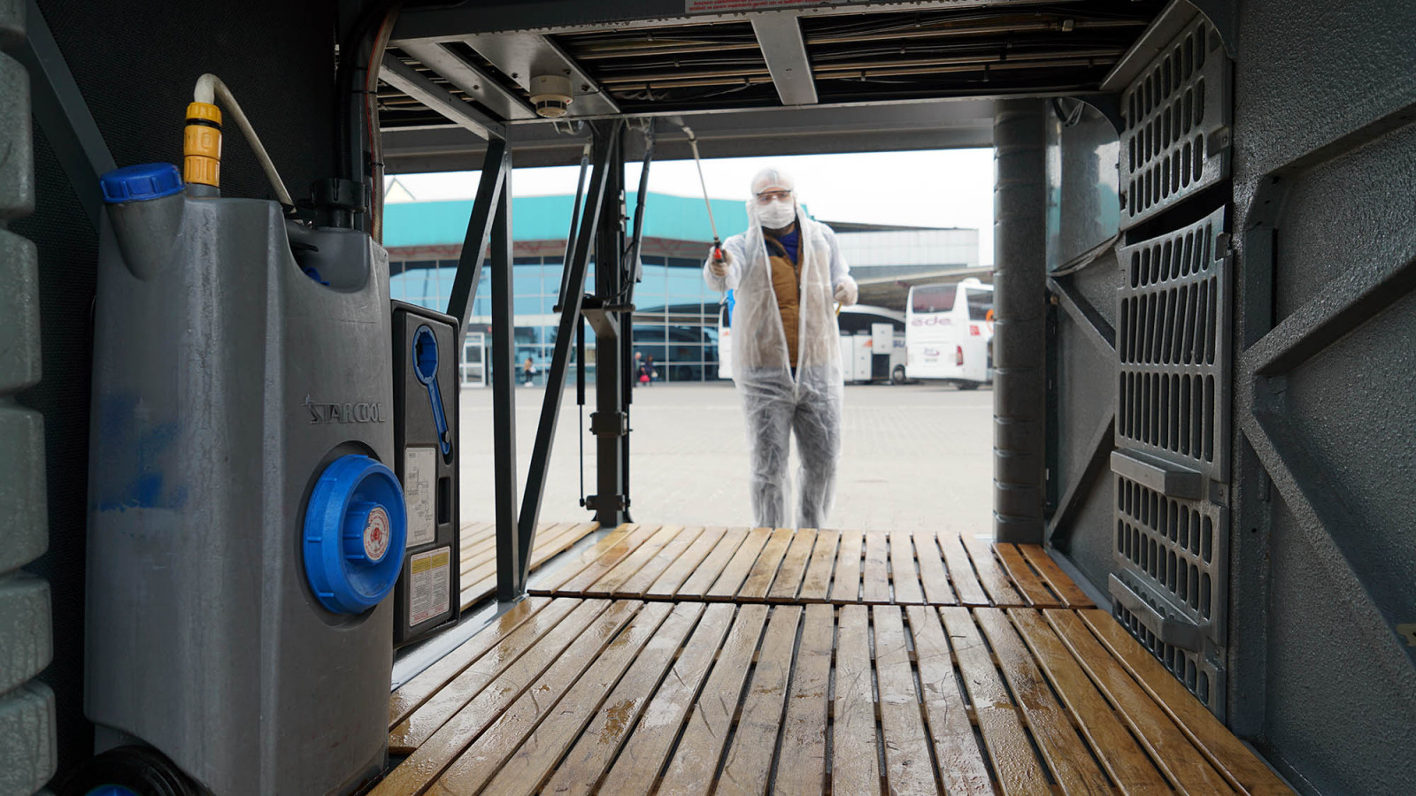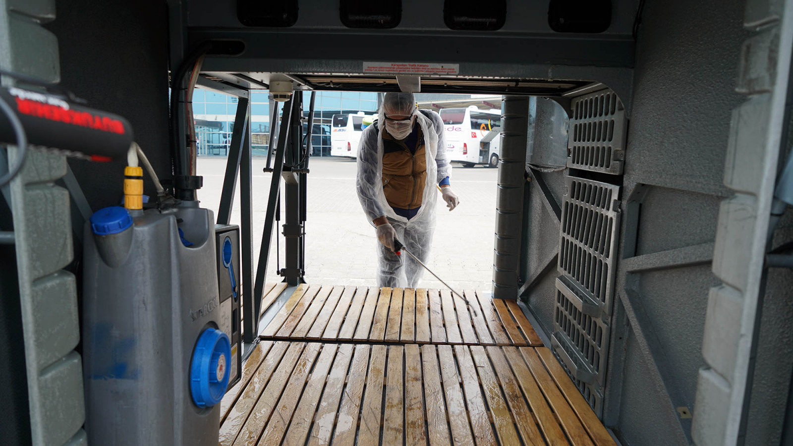 Kahramanmaraş Otogarında Büyükşehir Belediyesi tarafından yapılan ilaçlama ve dezenfekte çalışmalarına dikkat çeken firma yetkilisi Alican Kayabaşı ise açıklamasında: “Sağolsun Büyükşehir Belediyemizin ekipleri gerek otogar içerisinde gerekse otobüs ve minibüslerde ilaçlama ve dezenfekte çalışmalarını sürdürüyorlar. Halkımızın bu konuda bir endişe duymasına gerek yok. Yolcularımıza ve tüm insanlarımıza sesleniyorum. Ülkemizde ve şehrimizde gerekli önlem ve tedbirler alınmaktadır. Endişe edilecek bir durum yoktur. Ayrıca firma olarak bizler de üzerimize düşen görevi fazlasıyla yerine getirmekteyiz” ifadelerini kullandı.