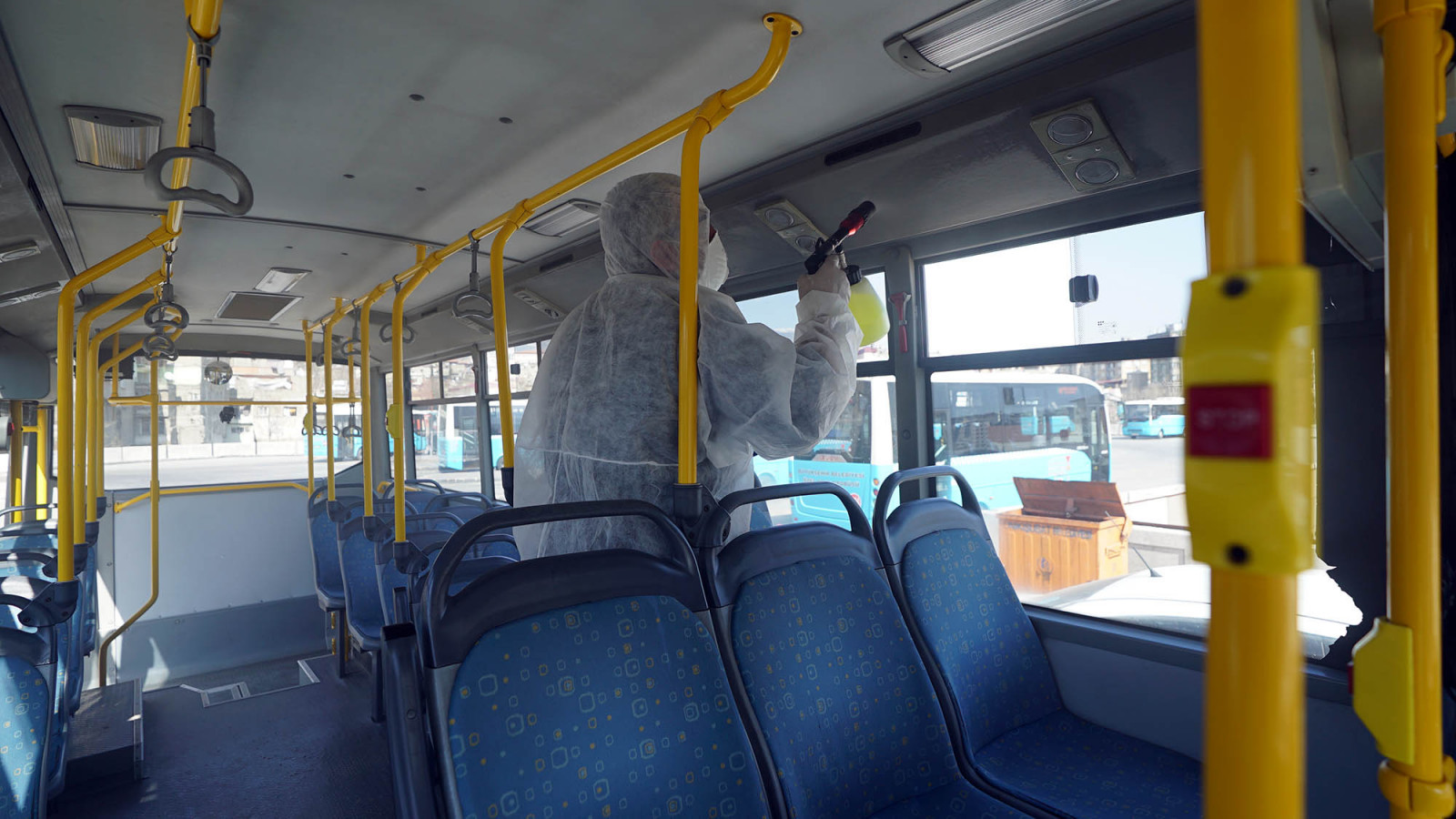 Kahramanmaraş Büyükşehir Belediyesi il genelinde toplu taşıma araçlarında başlattığı ilaçlama ve dezenfekte çalışmalarına devam ediyor.