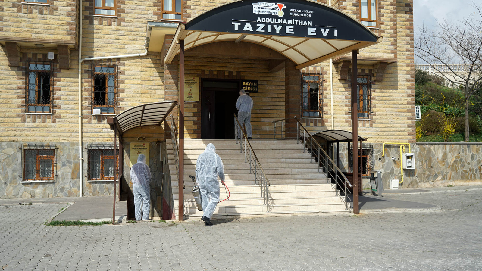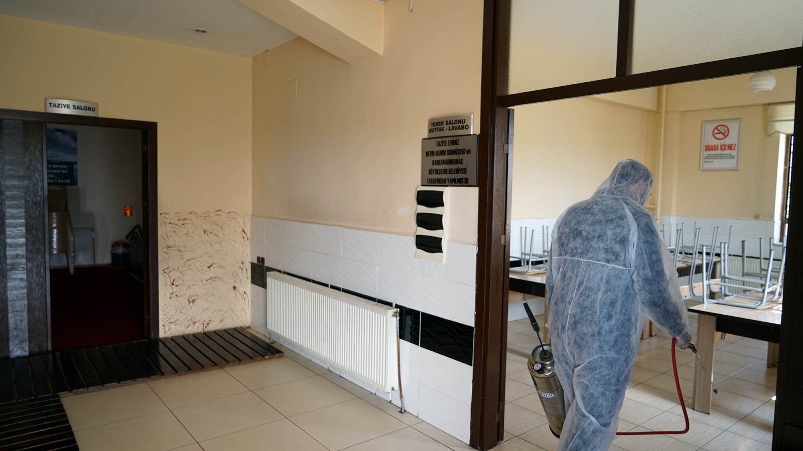 Kahramanmaraş Büyükşehir Belediyesi tüm dünyayı etkisi altına alan koronovirüs tehlikesine karşı taziye evlerinde ilaçlama ve dezenfekte çalışmalarını sürdürüyor.