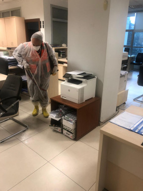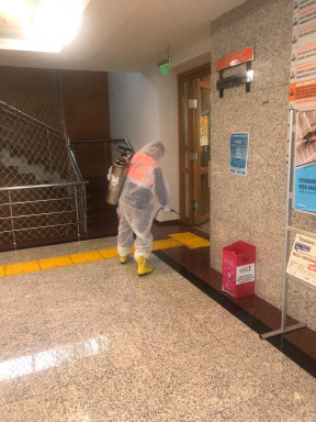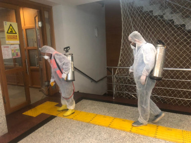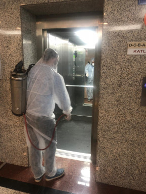 Büyükşehir Belediyesi Destek Hizmetleri Dairesi personellerince hafta sonu gerçekleştirilen ilaçlama ve dezenfekte çalışmalarının ardından bina genelinde temizlik çalışmaları tamamlandı.