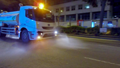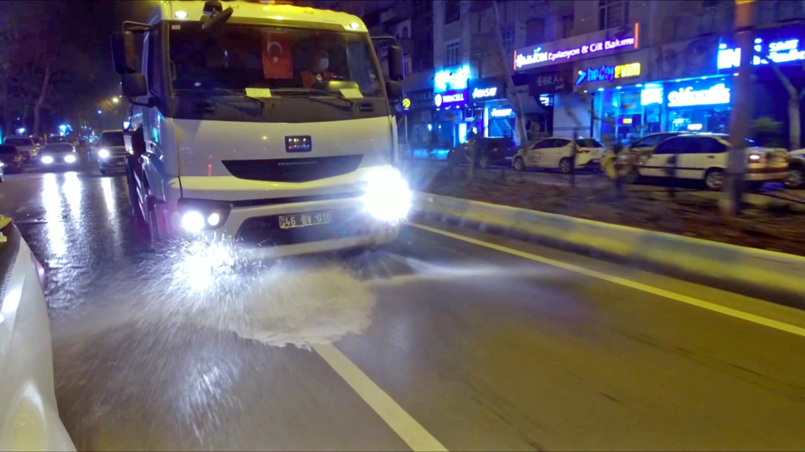 Kahramanmaraş Büyükşehir Belediyesi tüm dünyayı etkisi altına alan koronavirüs salgınına karşı tedbir amaçlı olarak tüm caddelerde ilaçlama yaparak dezenfekte ediyor.