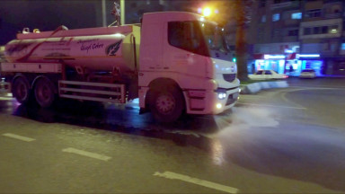 Büyükşehir Belediyesi ekipleri ilaçlama ve dezenfekte çalışmalarını trafikte aksaklığa meydan vermemek adına gece geç saatlerde tamamladı.