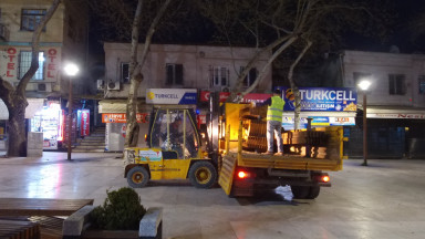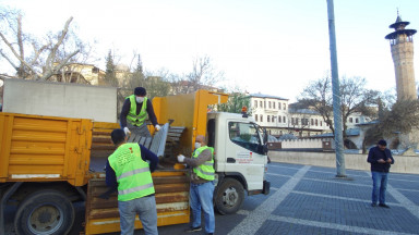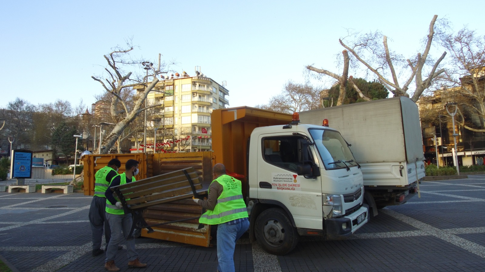 Kahramanmaraş Büyükşehir Belediyesi, Sokağa Çıkma Evde Kal uygulaması kapsamında meydanlarda ve parklarda bulunan oturma bankları kaldırdı. Büyükşehir Belediyesi ekiplerince gerçekleştirilen çalışmada meydanlarda ve parklarda oturma bankları söküldü.