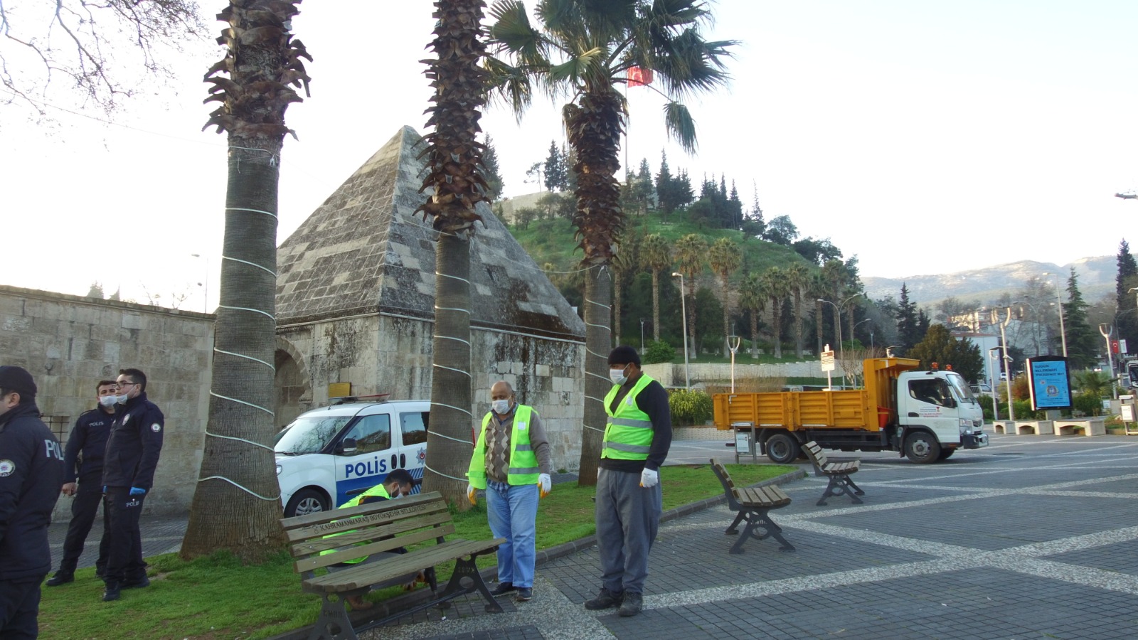 Tüm dünyayı etkisi altına alan koronavirüs salgını kapsamında İçişleri Bakanlığı’nca 65 yaş ve üzeri insanlar için uygulanan sokağa çıkma yasağı gereği Kahramanmaraş Büyükşehir Belediyesi ekiplerince meydanlar ve parklardaki banklar kaldırıldı.