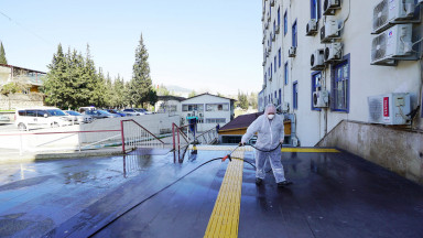 Kahramanmaraş Büyükşehir Belediyesi tüm dünyayı etkisi altına alan koronavirüs salgını kapsamında tedbir amaçlı yürüttüğü çalışmalarına bir yenisini daha ekledi. Büyükşehir Belediyesi Çevre Sağlığı ve İlaçlama Şube Müdürlüğü ekipleri Necip Fazıl Şehir Hastanesi Yörük Selim Ek binası çevresinde ilaçlama ve dezenfekte çalışmalarını tamamladı.