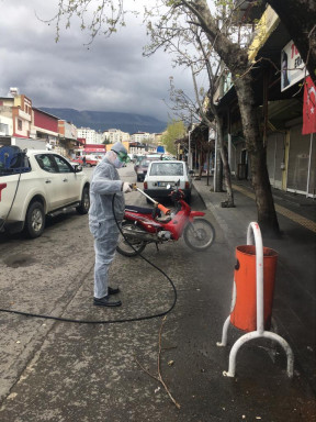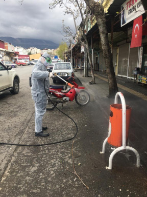 Tüm dünyayı etkisi altına alan koronavirüs salgını kapsamında Kahramanmaraş Büyükşehir Belediyesi il genelinde dezenfekte çalışmalarını aralıksız sürdürüyor.