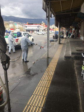 Büyükşehir Belediyesi Çevre Sağlığı ve İlaçlama Şube Müdürlüğü ekipleri Esenceli Caddesi, Salman Zulkadiroğlu Bulvarı, Derdimend Dede Caddesi, Barbaros Caddesi, Turgut Özal Bulvarı, Ali Mülazimoğlu Caddesi, Cahit Zarifoğlu Caddesi, Mustafa Or Caddesi, Egemenlik Caddesi, Gaziosmanpaşa Bulvarı, Milli Egemenlik Caddesi, Süleyman Çelebi Bulvarı, Garbi Caddesi, Girne Caddesi, Dayızade Mehmet Efendi Caddesi, Dereli Caddesi, Başkonuş Caddesi, Süleyman Çelebi Caddesi, Güzlek Caddesi, Genç Osman Caddesi, Bahçeci Hoca Bulvarı, Sakarya Caddesi, Trabzon Bulvarı, Azerbaycan Bulvarı, Sarayaltı Caddesi, Divanlı Caddesi, Kanlidere Caddesi, Uzunoluk Caddesi, 5. Toptancılar Caddesi, 3. Toptancılar Caddesi, Köy Garajı, Şekerli Caddesi, Vakıftarla Caddesi ve Demirciler Çarşısı’nda ilaçlama yaparak dezenfekte çalışmalarını tamamladılar.