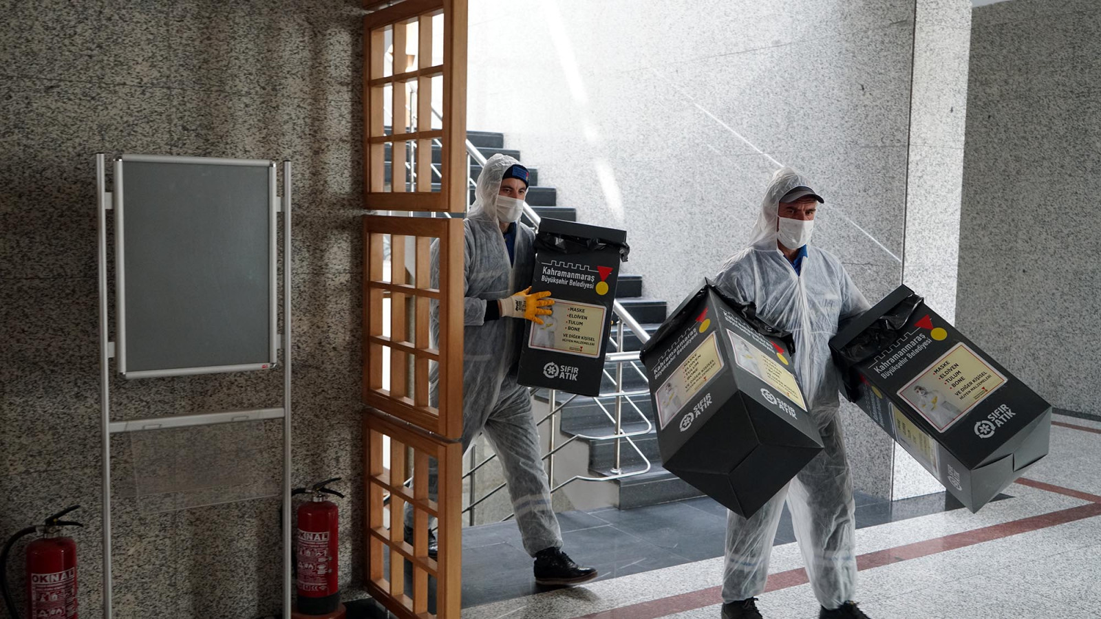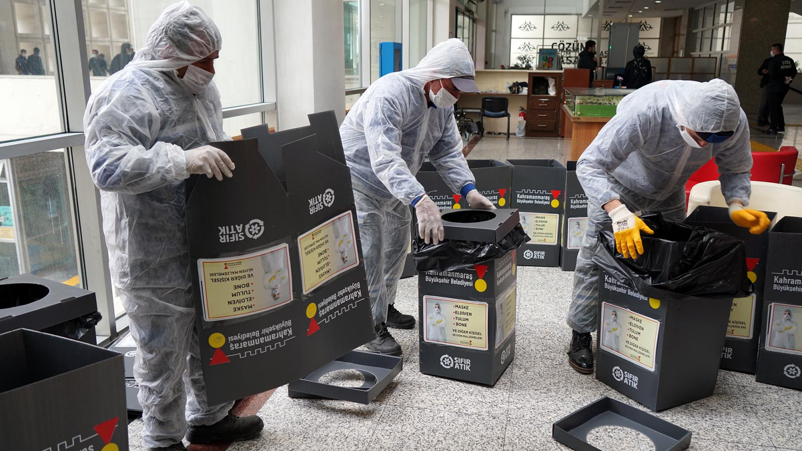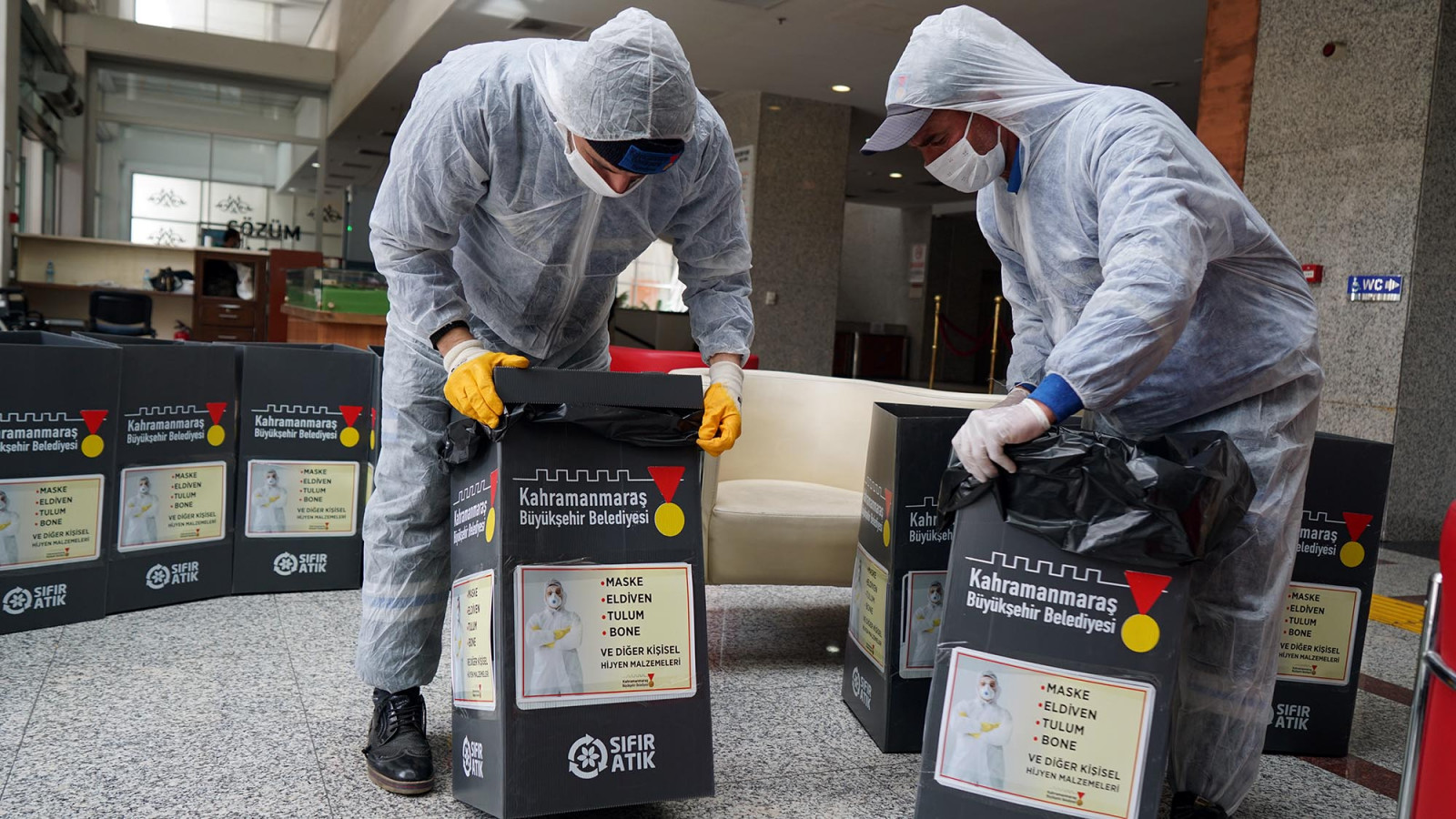 Koronavirüsle mücadele tedbirleri kapsamında Kahramanmaraş Büyükşehir Belediyesi Çevre Koruma ve Kontrol Dairesi Başkanlığı Atık Yönetimi Şube Müdürlüğü ekipleri tarafından hazırlanan kutular büyükşehir hizmet binası başta olmak üzere bağlı tüm birimlerine dağıtımı yapıldı.