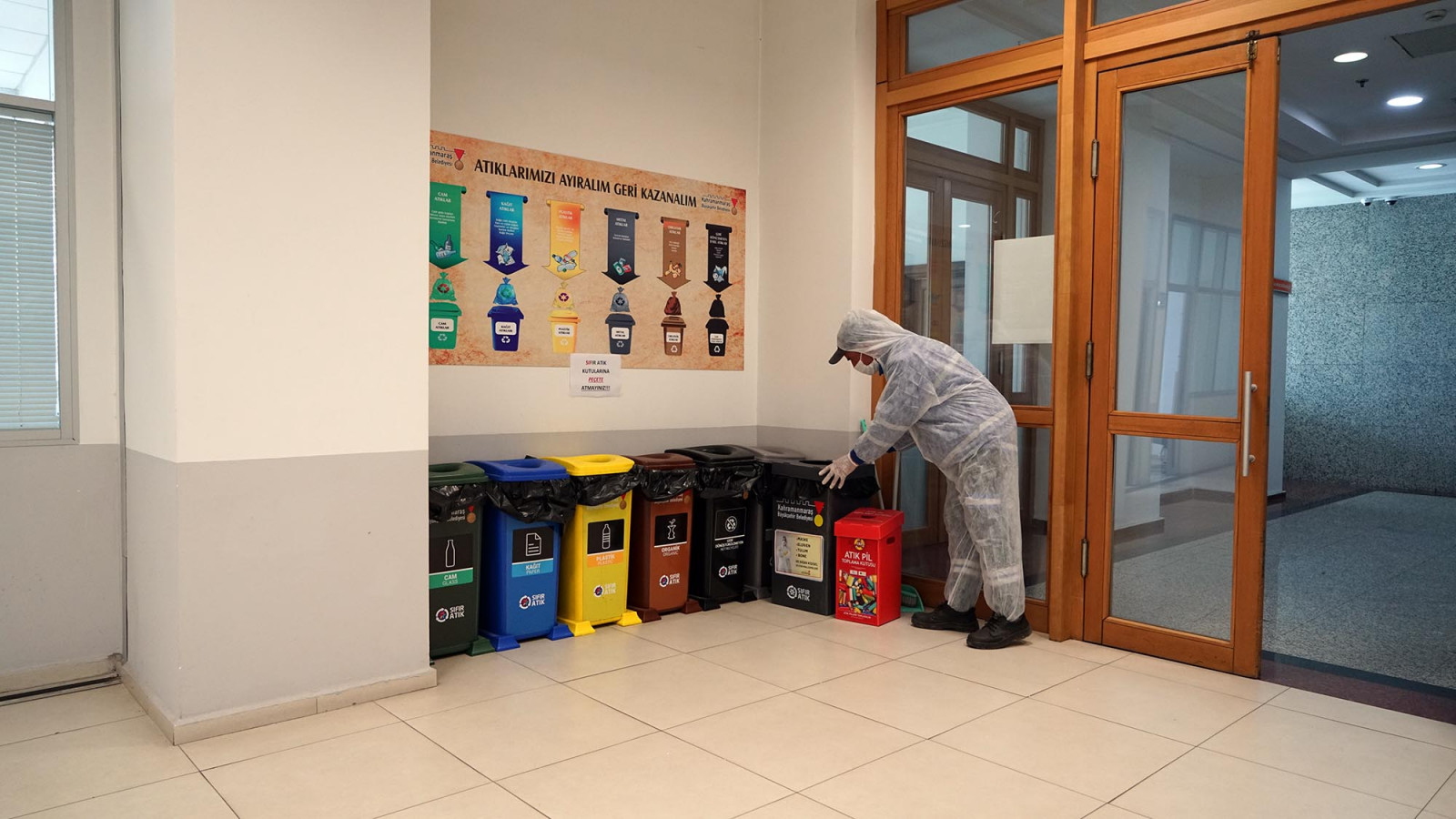 Büyükşehir belediyesi ana hizmet binası ve belediyeye bağlı dış birimlere, kişisel hijyen malzemeleri (tulum, eldiven, maske vb. ) atık kutuları dağıtımı yapıldı. Bu sayede kişisel hijyen malzemeleri kaynağında diğer atıklardan ayrı toplanarak bertarafı yapılacak.