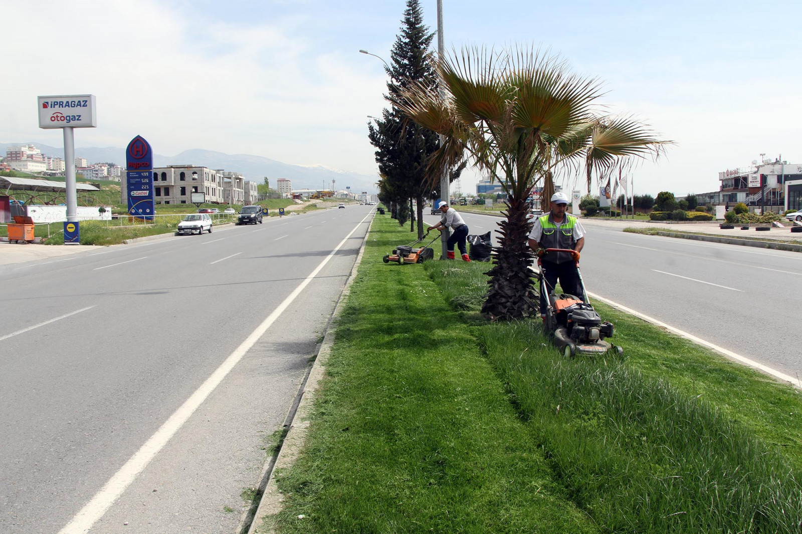 Büyükşehir Belediyesi Fen İşleri Dairesi Başkanlığı Park ve Bahçeler Şube Müdürlüğü ekipleri tarafından yürütülen çalışmalarda refüjlerdeki çimlerin biçilmesinin yanı sıra kurumuş ağaç dallarının da budamaları yapılıyor.