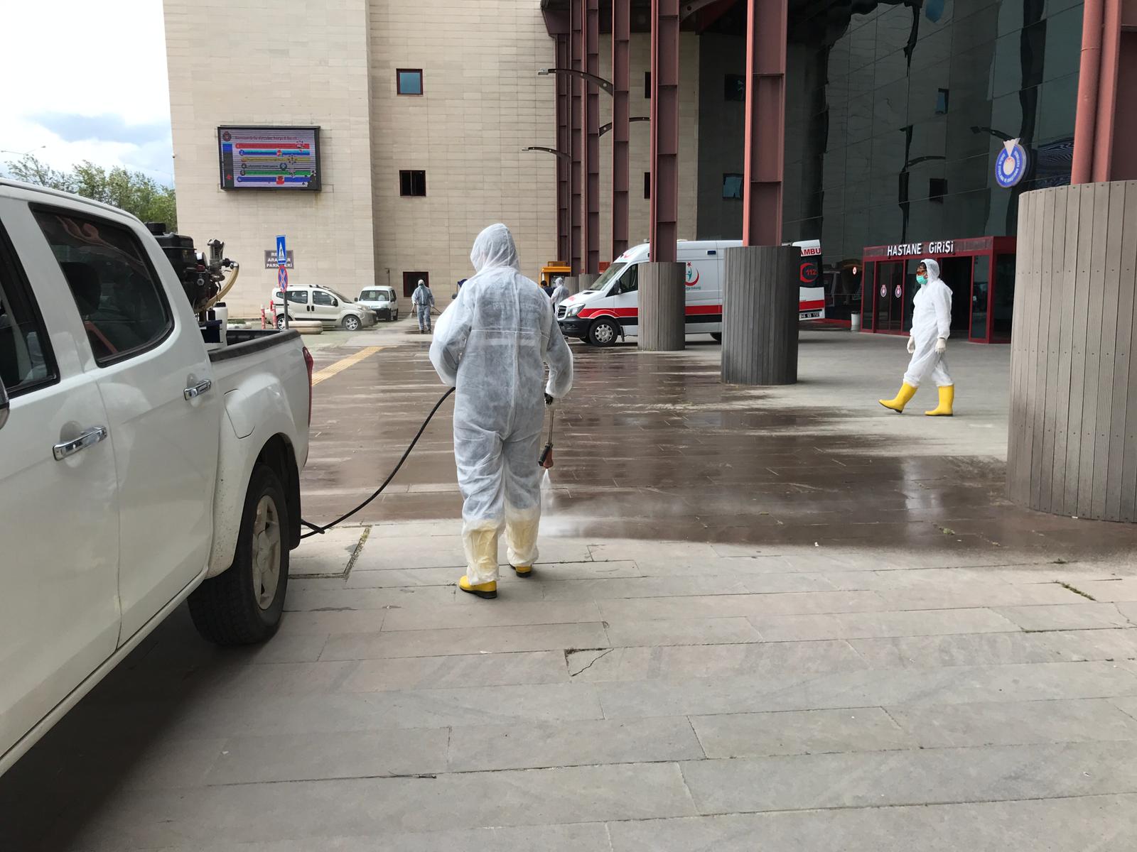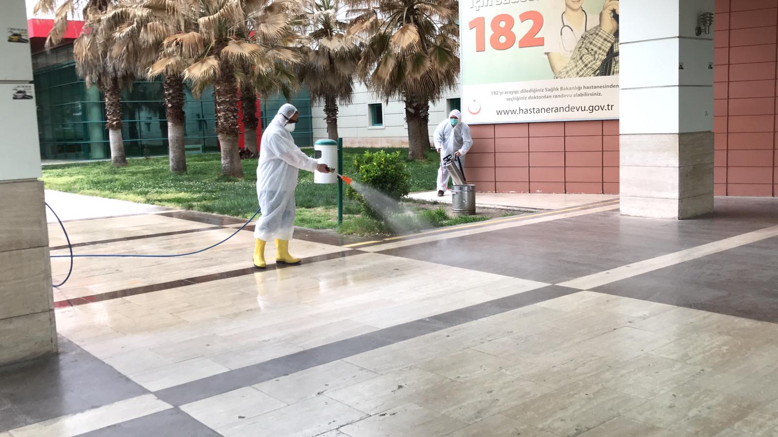 Bütün dünyayı etkisi altına alan covid-19 salgınına karşı Büyükşehir Belediyesi hastaneler ve sağlık kuruluşlarında ilaçlama ve dezenfekte çalışmalarına devam ediyor.