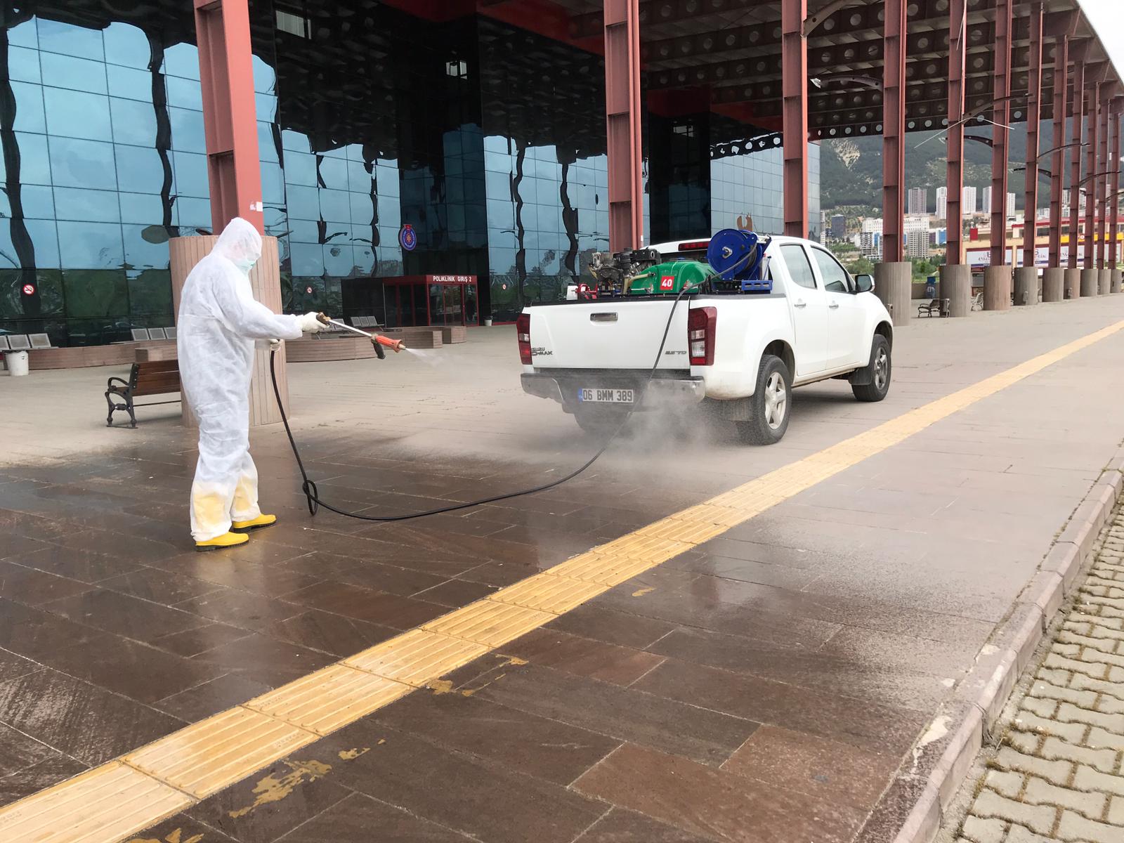 Çevre Koruma ve Kontrol Dairesi Başkanlığı Çevre Sağlığı ve İlaçlama Şube Müdürlüğü ekiplerince Necip Fazıl Şehir Hastanesi başta olmak üzere Yörükselim Ek Hizmet binası, Kadın Doğum ve Çocuk Hastalıkları Hastanesi, KSÜ Tıp Fakültesi etrafında ilaçlama ve dezenfekte çalışmaları devam ediyor.