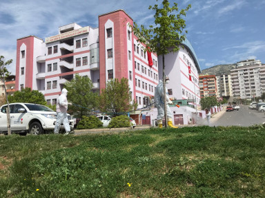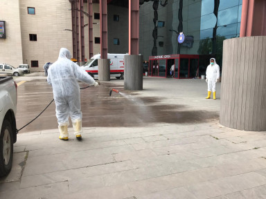 Kahramanmaraş Büyükşehir Belediyesi covid-19 salgını kapsamında ilimizde bulunan sağlık kuruluşların da ilaçlama ve dezenfekte çalışmalarını sürdürüyor.
