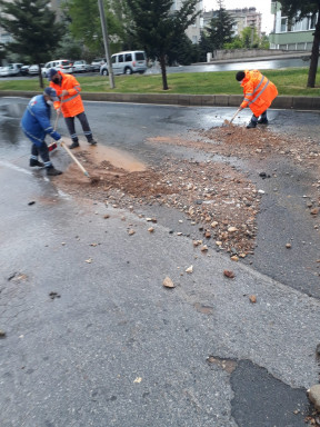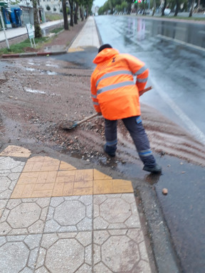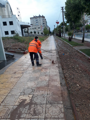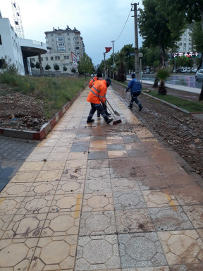 Büyükşehir Belediyesi Çevre Koruma ve Kontrol Dairesi Başkanlığı ekipleri tarafından yağışlardan dolayı meydana gelen alüvyon ve molozların temizliği devam ediyor. Ekipler özellikle cadde ve bulvarlarda meydana gelen yağmur sularının getirdiği molozların temizliğini yaparak olumsuzlukların önüne geçiyorlar.