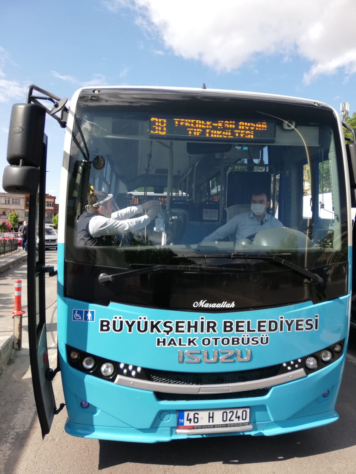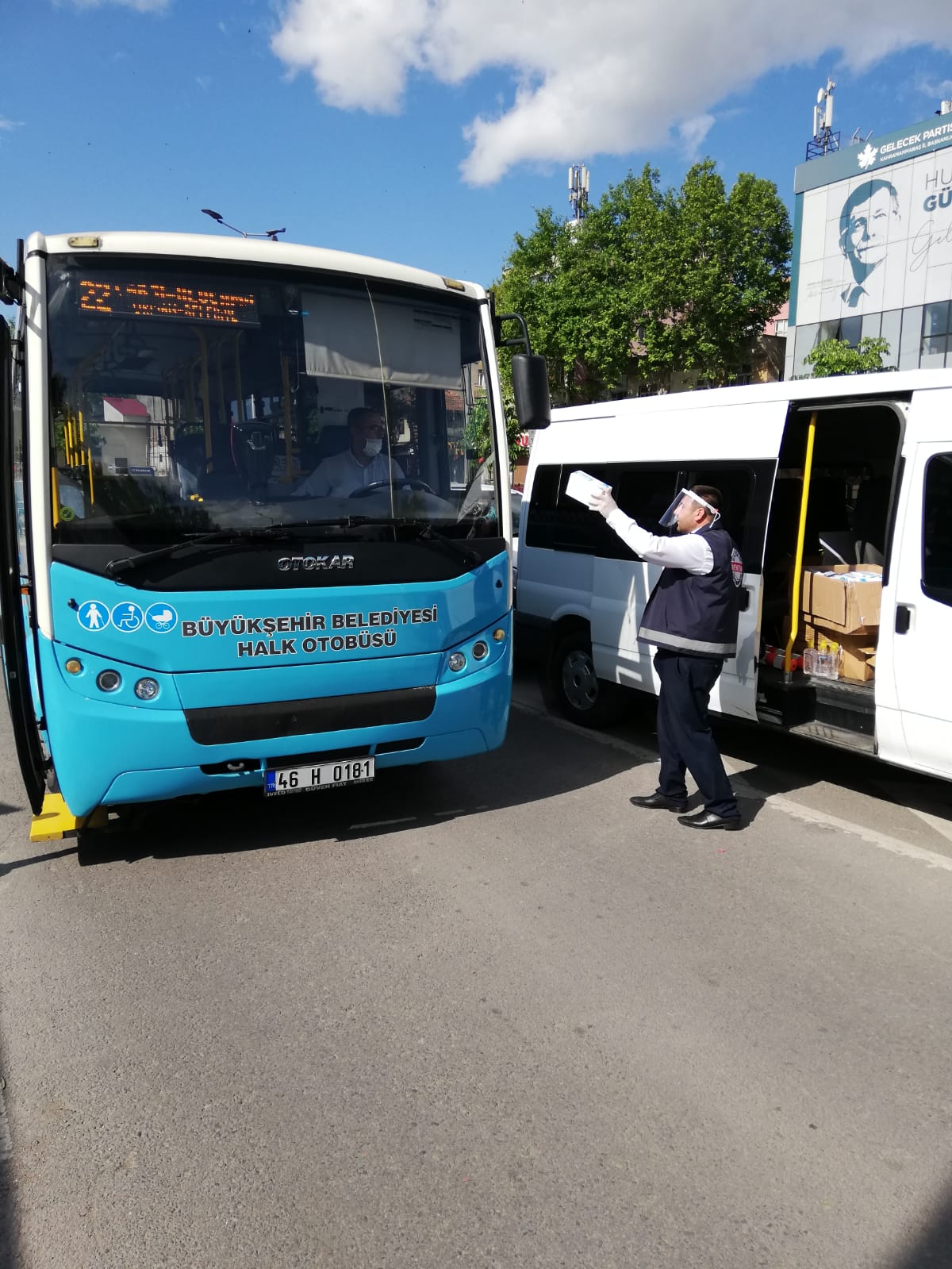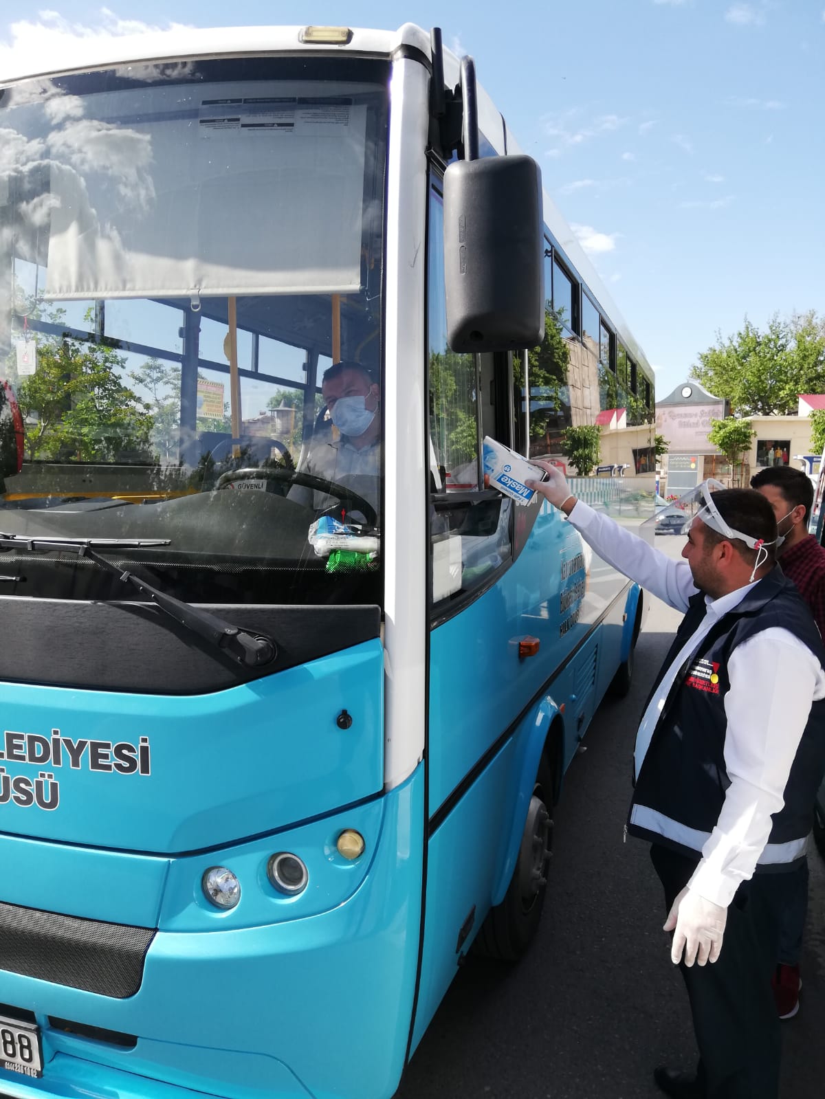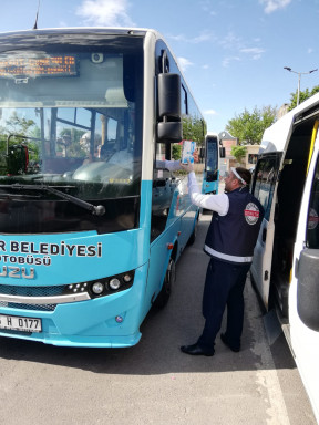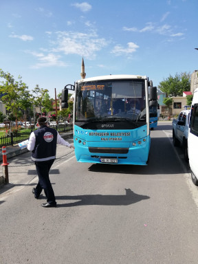 Kahramanmaraş Büyükşehir Belediyesi koronavirüs salgını kapsamında toplu taşıma araçlarında maske dağıtımına devam ediyor.