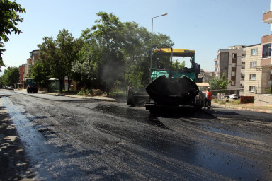 Kahramanmaraş Büyükşehir Belediyesi yol yapım ve onarım çalışmaları kapsamında Onikişubat İlçesi Kemal Önyurt Caddesi’nde sıcak asfalt çalışmalarına başladı.