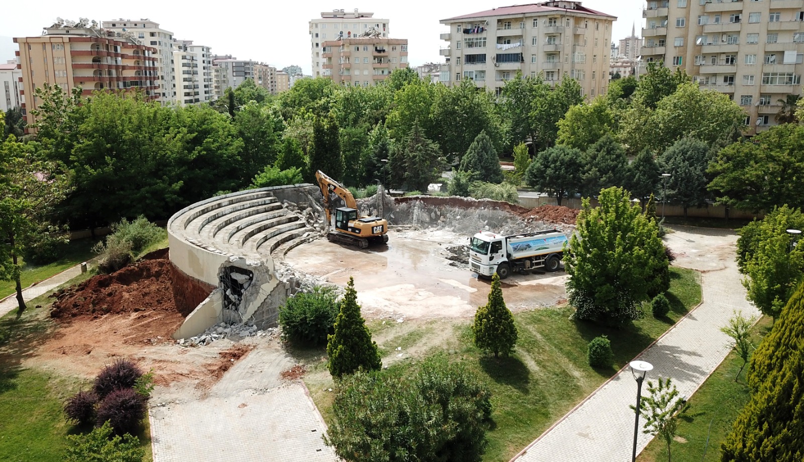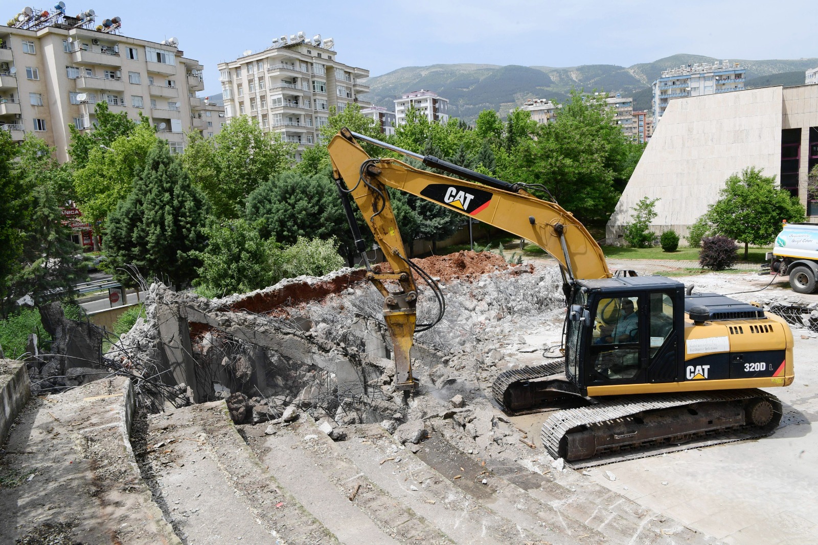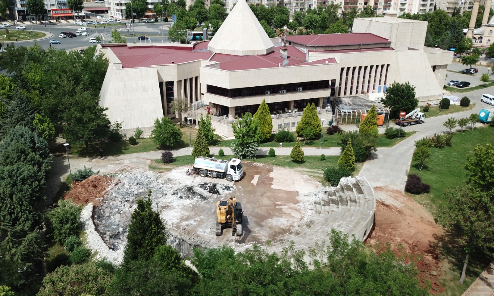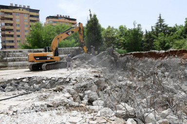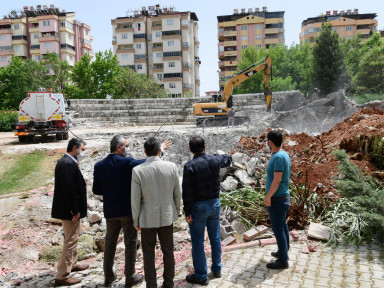Kahramanmaraş Büyükşehir Belediye Başkanı Hayrettin Güngör, Necip Fazıl Kültür Merkezi arka kısmında devam eden yıkım çalışmalarını yerinde inceleyerek bölgeye bütüncül bir kültür merkezi kazandıracaklarını söyledi.