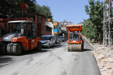 Büyükşehir Belediyesi Pazarcık İlçesinde sıcak asfalt serim çalışmalarına aralıksız olarak devam ediyor.