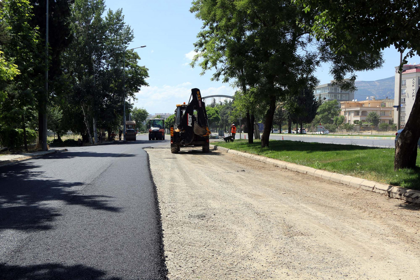 Kahramanmaraş Büyükşehir Belediyesi yol yapım ve onarım çalışmalarına şehrin farklı noktalarında devam ediyor.