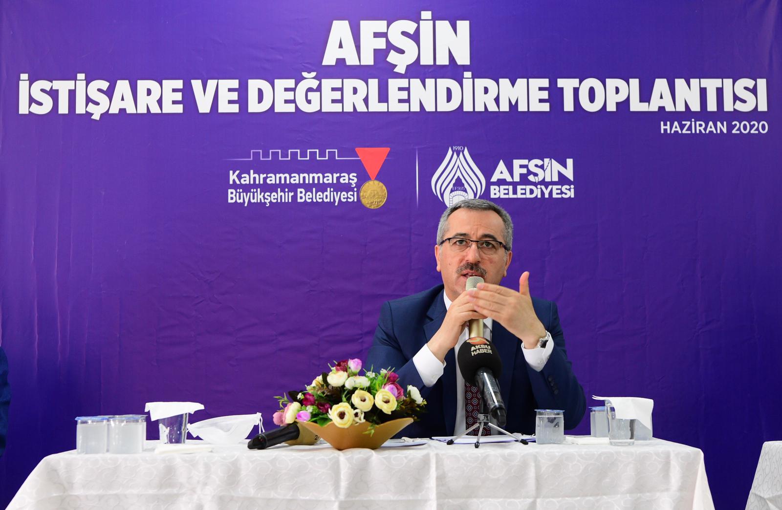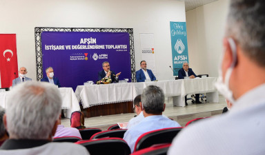 Afşin Kültür Merkezi’nde gerçekleştirilen İstişare ve Değerlendirme Toplantısında kısa bir konuşma yapan Afşin Belediye Başkanı Mehmet Fatih Güven, Büyükşehir Belediye Başkanı Hayrettin Güngör’ün Afşin’e teşriflerinden dolayı memnuniyet duyduklarını ifade ederek: “Büyükşehir Belediyemiz ile işbirliği içerisinde sorunlarımızı çözme manasında ciddi adımlar atıyoruz. Elbirliği ile daha yaşanılabilir bir Afşin için birlik ve beraberlik içerisinde hareket ediyoruz. Ben şahsım ve ilçem adına Sayın Başkanımız Hayrettin Güngör’e teşekkür ediyorum” dedi.