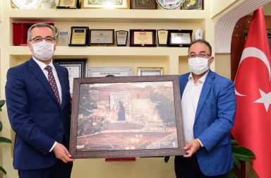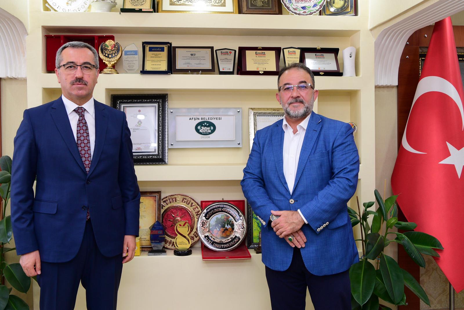 Afşin Belediye Başkanı Mehmet Fatih Güven ve meclis üyeleri tarafından karşılanan Başkan Güngör, Afşin Belediyesini ziyaret etti.
