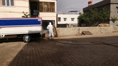 Kahramanmaraş’ın Pazarcık İlçesi’nde koronavirüs tedbirleri kapsamında karantinaya alınan Yiğitler Mahallesi’nde Büyükşehir Belediyesi ilaçlama yaparak dezenfekte çalışmalarını tamamladı.