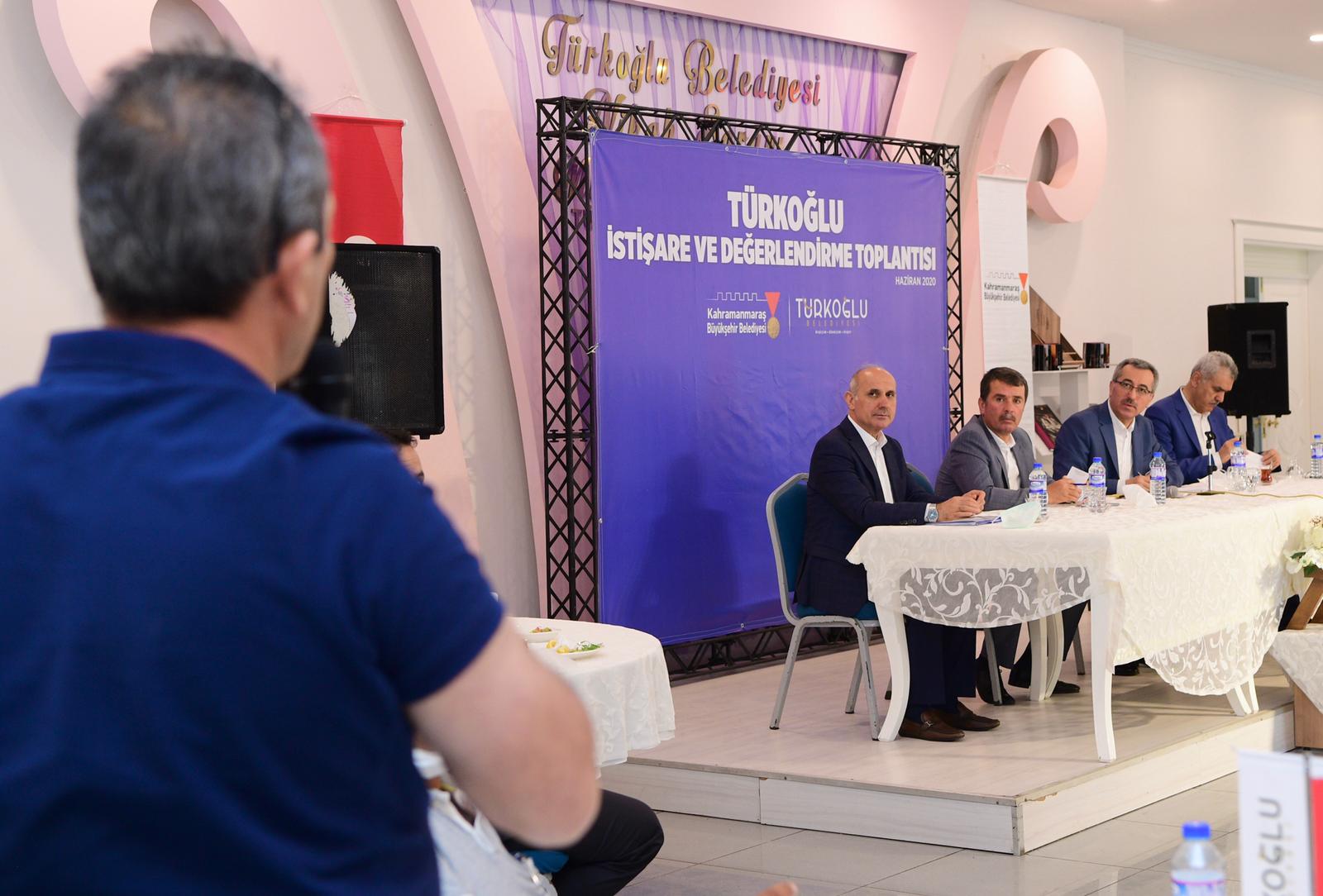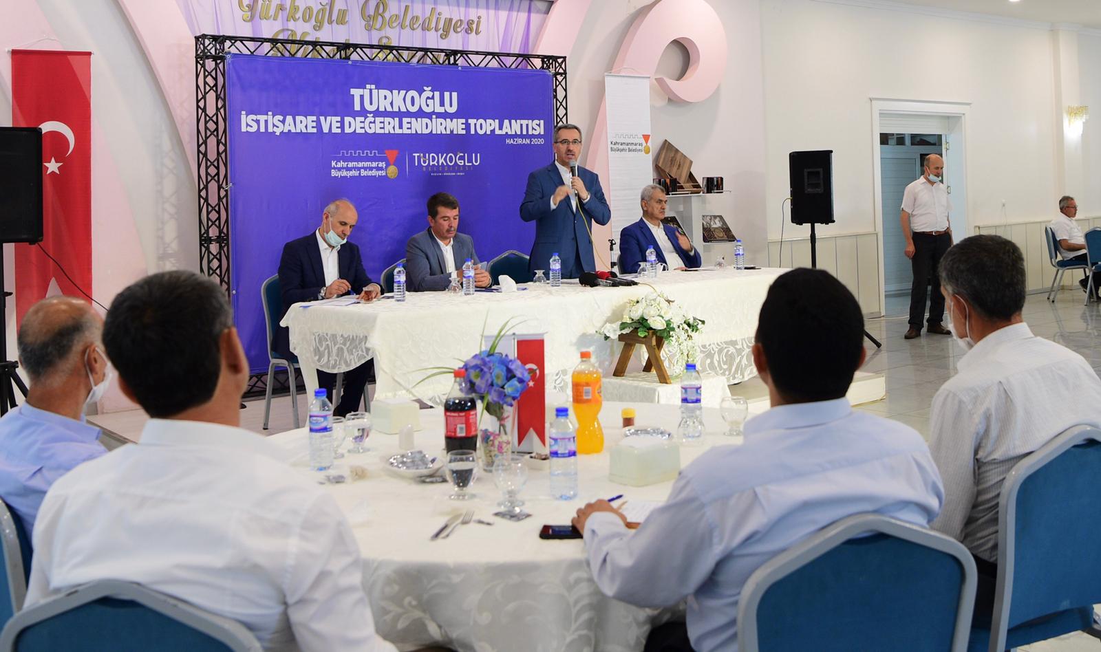 İstişare ve Değerlendirme Toplantısı için muhtarlarla bir araya gelen Kahramanmaraş Büyükşehir Belediye Başkanı Hayrettin Güngör, Türkoğlu ilçesinin Kahramanmaraş’tan ayrı düşünülemeyeceğini ifade ederek: “Türkoğlu ilçemiz de Onikişubat ve Dulkadiroğlu ilçelerimiz gibi metropol ilçe ve merkez ilçe olma yolunda hızla ilerliyor. Türkoğlu İlçemizde yol ve su sorunu kapsamında merkezde fazla bir sorun olmadığını gördük. Kırsal mahallelerimizde yol kapsamında sorunlar olduğunu tespit etti. Bu önümüzdeki süreçte Türkoğlu ilçemizin mahallelerinde 10 km sıcak asfalt 7 km de sathi kaplama yapılacak. Bunun yanı sıra yüzme havuzu ve spor salonu ihtiyacı da giderilecek” dedi.
