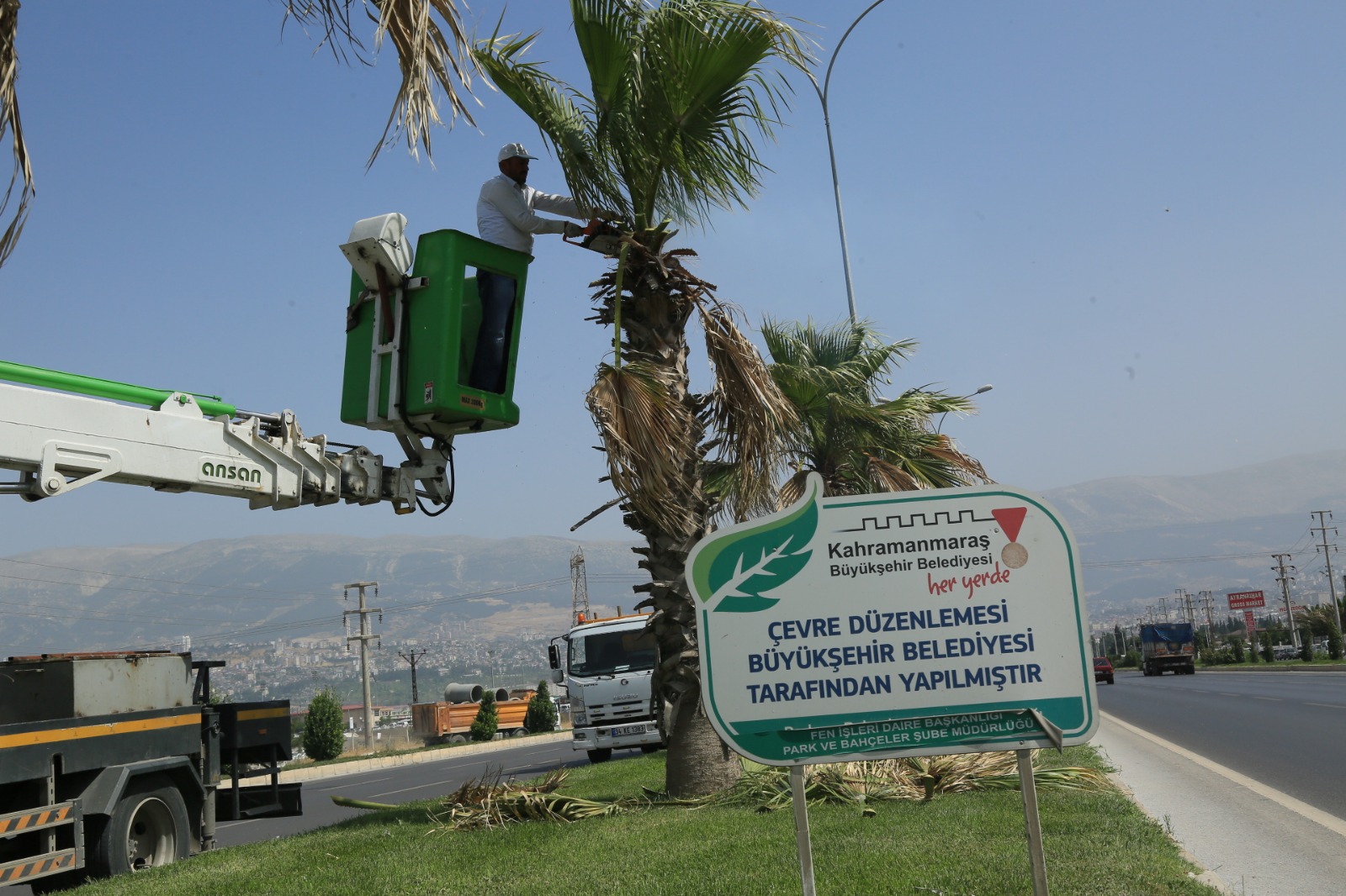Kahramanmaraş Büyükşehir Belediyesi Fen İşleri Dairesi Başkanlığı Park ve Bahçeler Şube Müdürlüğü ekipleri tarafından yürütülen çalışmalarda refüjlerdeki çimlerin biçilmesinin yanı sıra kurumuş ağaç dallarının da budamaları yapılıyor. Yeşil alan bakım faaliyetleri kapsamında Kahramanmaraş-Adana yolunda palmiye ağaçlarını budama ve çim serme; şehir merkezinde ise, refüjlerde çim biçme, sulama ve bakım çalışmaları tamamlanmak üzere. Büyükşehir Belediyesi ekipleri toprak tesviye, bakım ve budamayla birlikte temizlik çalışmalarına da ağırlık veriyor.