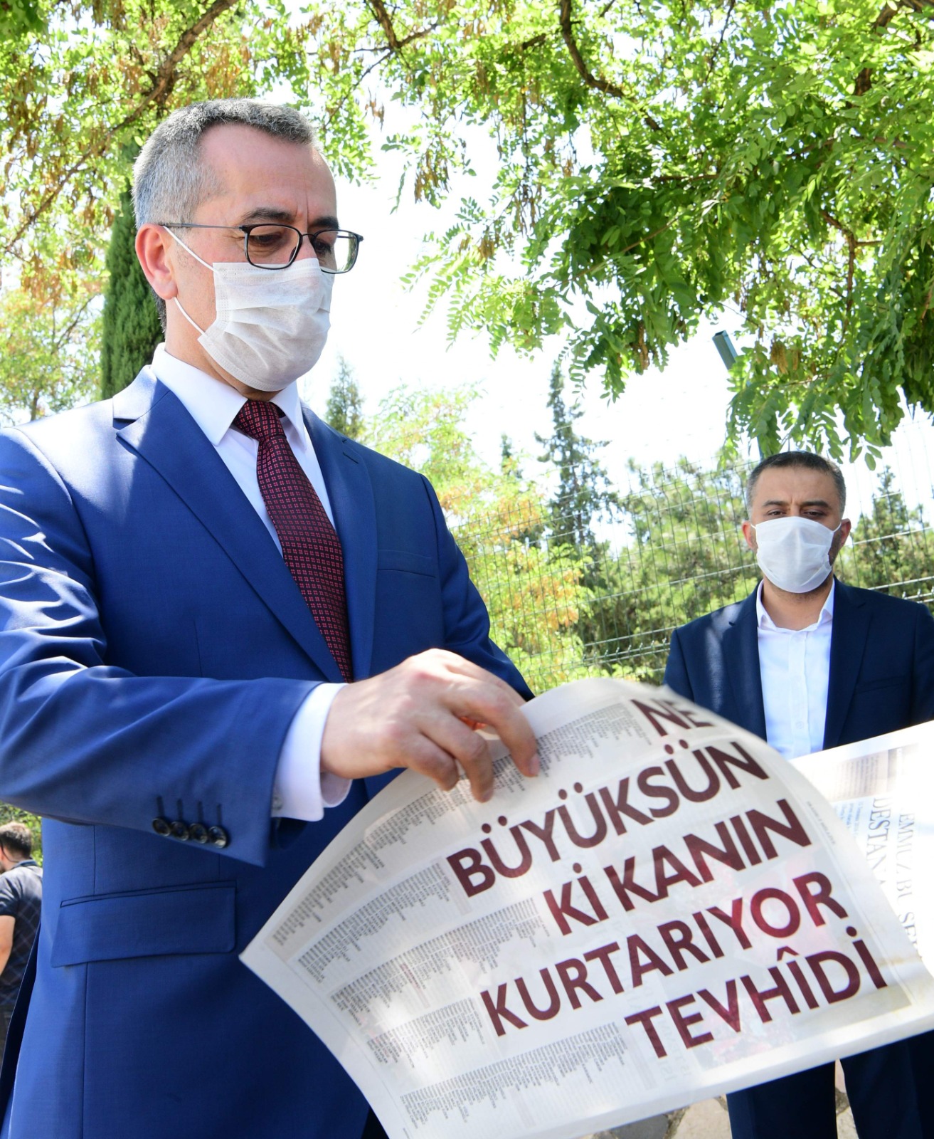 Bizim genç nesillerimize ve gençlerimize tarihteki olayları anlatmamız gerekiyor. 15 Temmuz kurtuluş mücadelemiz ve tarihteki birçok olayımızı, gençlerimize aktararak, unutturmamamız gerekiyor. Gazetenin içerisinde, bizim kurtuluş mücadelemizde son derece önemli olan bir belge var. 100 yıl önce Kısakürekzadelerden Avukat Mehmet Ali bey, bir beyanname yayınlıyor. Bildiğiniz gibi Fransızlar kalemizdeki bayrağı indirdiklerinde o sabah, namaz vakti el yazısı ile yazdığı bir belge. Bunu oğlu Şahap vasıtasıyla Ulu Cami ve civarına astırıyor. Belgenin adı 'Alem-i İslam'a Hitap' Beyannamesidir. Bu çok önemli tarihi bir vesikadır. Buna sadece Avukat Mehmet Ali Kısakürek’in yazdığı bir vesika olarak bakamayız. Bu topyekün Anadolu halkının iradesini, vicdanını yansıtan bir belgedir.