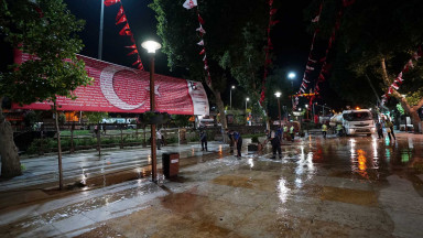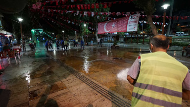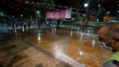 Kahramanmaraş Büyükşehir Belediyesi 15 Temmuz Demokrasi ve Milli Birlik Günü programı öncesi Demokrasi Meydanı’nda temizlik ve dezenfekte çalışmasını tamamladı.