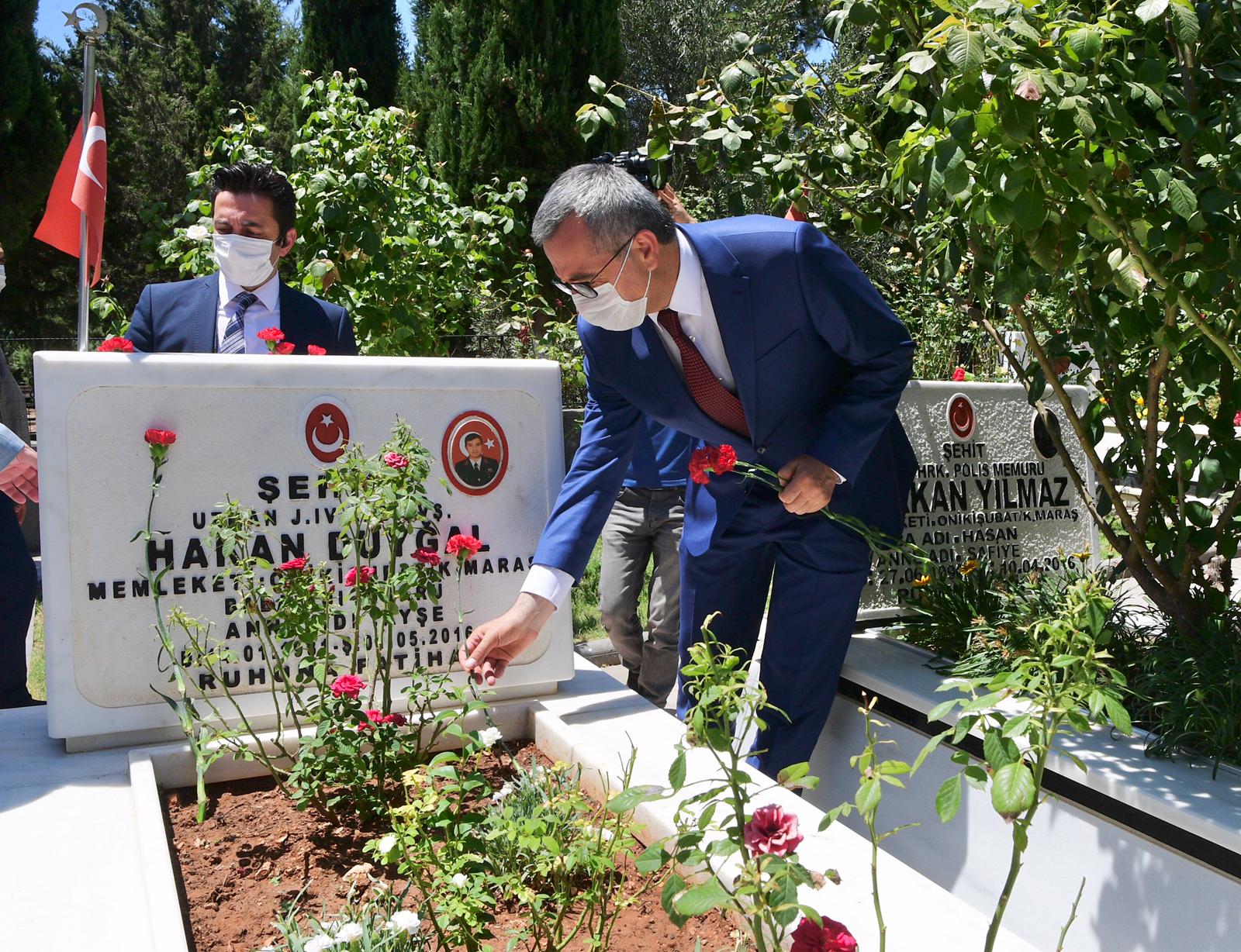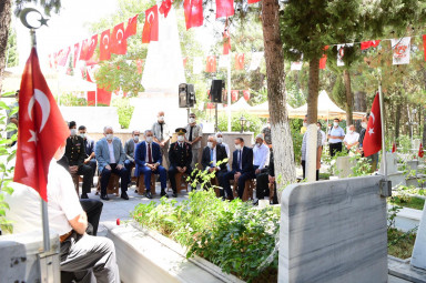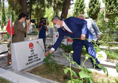 15 Temmuz Demokrasi ve Milli Birlik Günü münasebetiyle düzenlenen program çerçevesinde Şeyh Adil Mezarlığı’nda eski ve yeni şehitlik ziyaretinde bulunarak dualar edilip şehit mezarlarına karanfil bırakıldı.