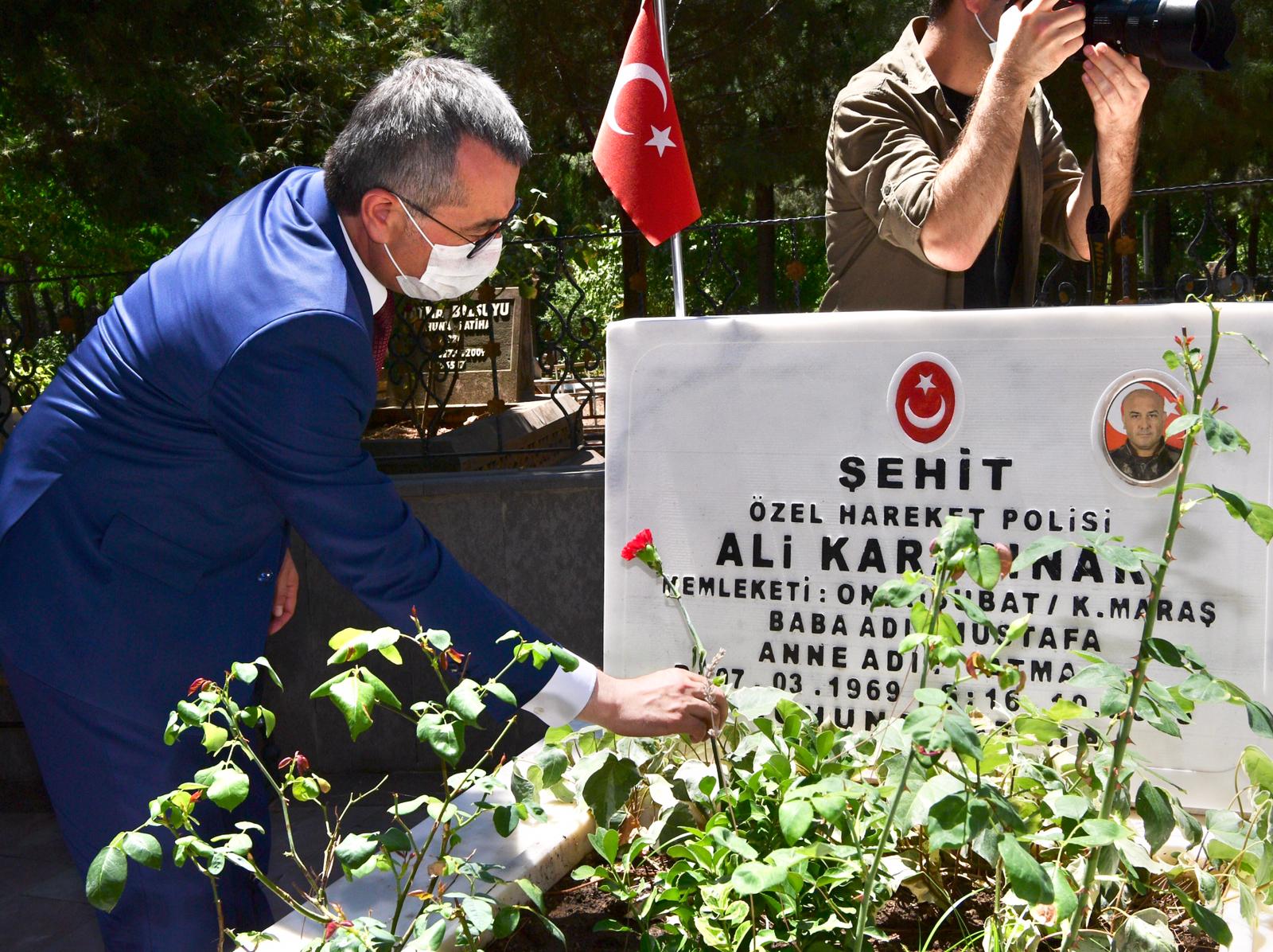 Şehitlik ziyaretine Kahramanmaraş Valisi Ömer Faruk Coşkun, Büyükşehir Belediye Başkanı Hayrettin Güngör, Garnizon Komutanı Tnk. Alb. Emin Mehmet Terzioğlu ile il protokolü ve şehit yakınları katıldı.