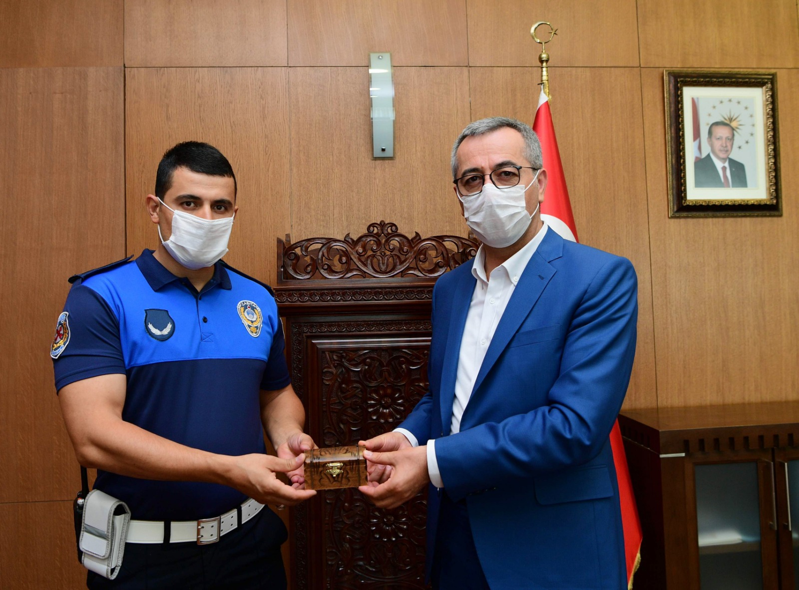 Başkan Güngör açıklamanın ardından Zabıta Memuru Enes Doğan’a altın hediye ederek ödüllendirdi.