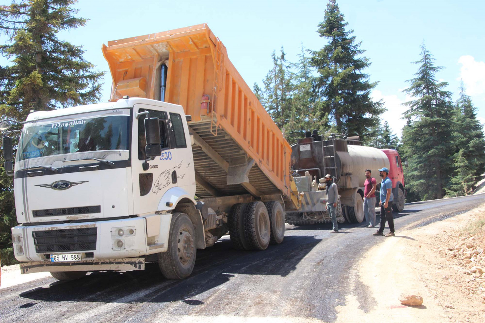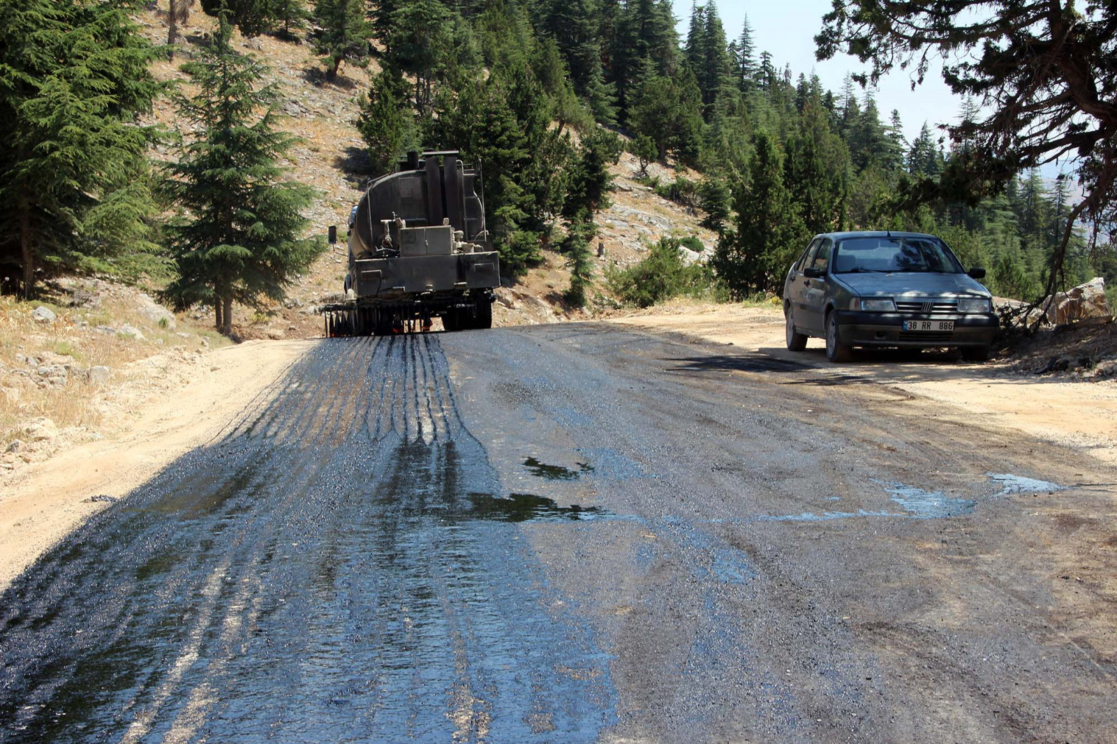 KMBB Fen İşleri Dairesi Başkanlığı ekipleri Göksun ilçesi, Soğukpınar Mahallesi’nde 9 km. uzunluğunda 7 m. genişliğindeki grup yolunda asfalt sathi kaplama çalışmalarına devam ediyor.