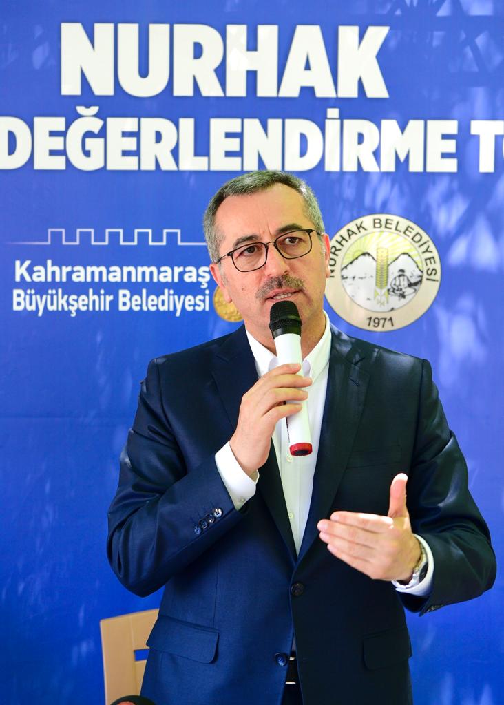 Konuşmasında KMBB’nin Nurhak’ta yaptığı yatırımlara da değinen Başkan Güngör; “İlçelerimizdeki her sorunun giderilmesini, kendimize görev biliyoruz. Bu manada, Nurhak’ta Sanayi Sitesi’nin yapımına başladık. Nurhak’ta her yaştan hemşehrilerimize yönelik, kütüphanesi, çok amaçlı salonu, ders çalışma yeri, spor alanı olan mekanlara ihtiyaç olduğunu tespit ettik, inşallah Nurhak’ımıza bu gibi mekanları kazandıracağız. Tarım ve hayvancılık kapsamında fidan, sulama borusu ve büzdağıtımına devam edeceğiz. Nurhak’a yapacağımız yatırımlar arasında 10 milyonluk Atık Su Arıtma Tesisi var. İlçe terminali, İçme Suyu Deposu, 23 km.lik su hattı, mevcut depoların iyileştirilmesi, Canlı Hayvan Pazar Yeri ve Kesimhane, Kapalı Pazar Yeri, 19 bin metrekare parke, Sırıklı Yayla Yolu, 2 bin 150 ton asfalt yama, 10 km. sathi kaplama yapmakta olduğumuz ve yapacağımız çalışmalar arasındadır. Nurhak’ımıza toplamda 24 milyonluk yatırım yaptık. Yapamayacağımız şeyi, kesinlikle taahhüt etmiyoruz.” diye konuştu.