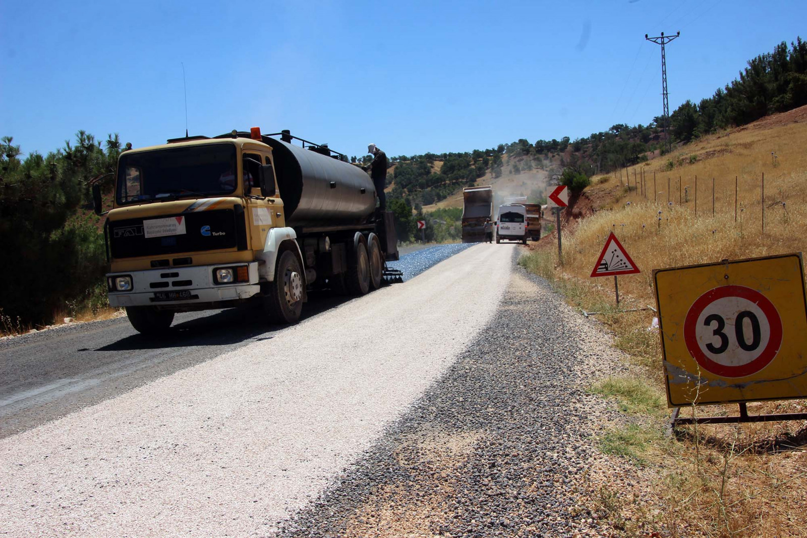 Ekipler 22 km. uzunluğunda olan yolun 13 km.’lik kısmı ve 8 m. genişliğindeki yolda sathi kaplama çalışmalarını tamamlayarak ulaşımın daha konforlu hale gelmesi için gayret sarf ediyor.
