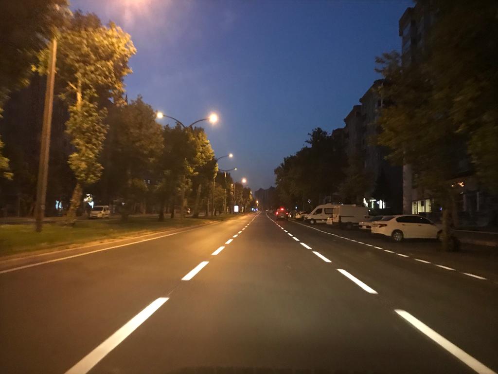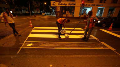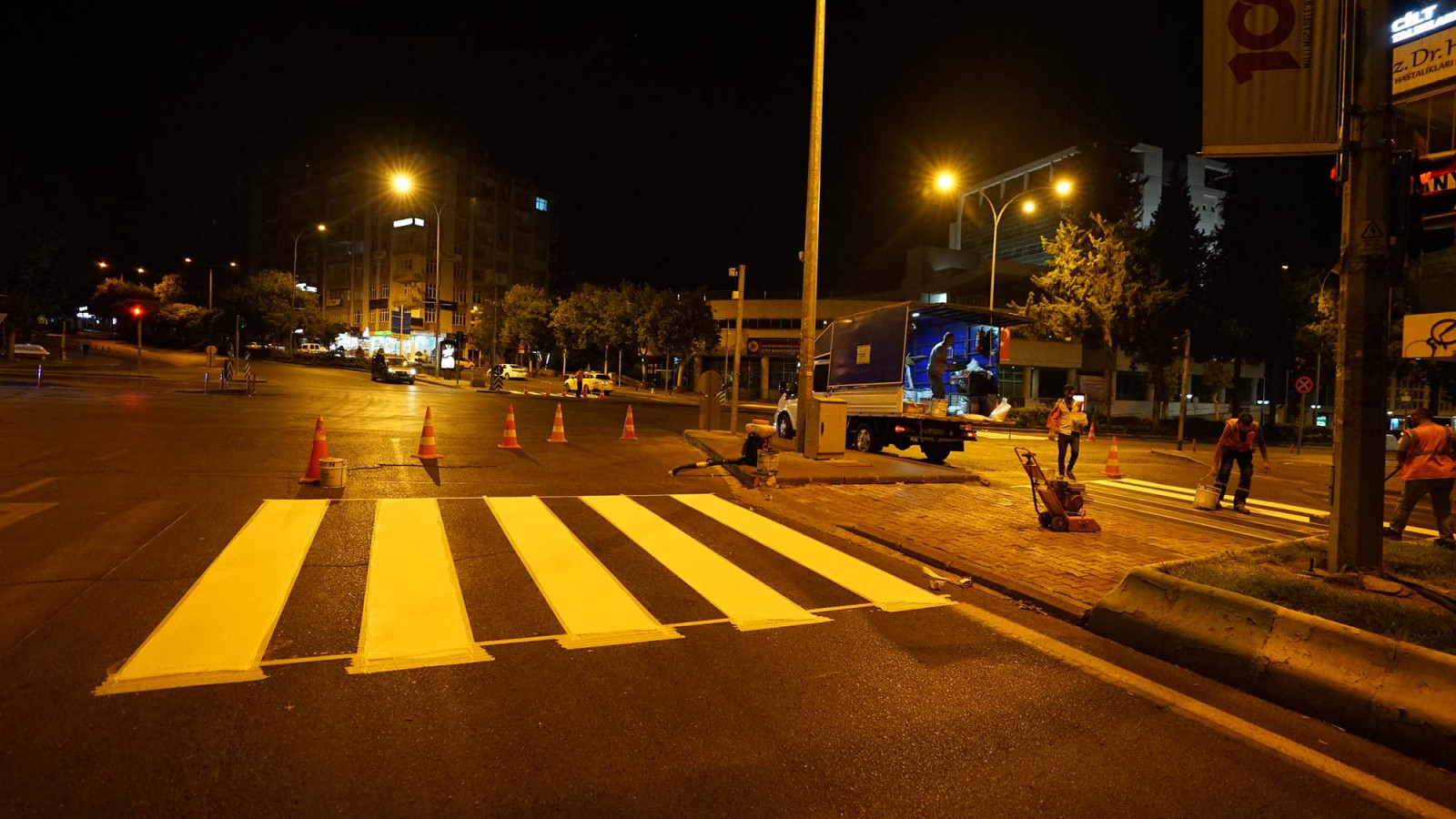 Ekipler, trafiği aksatmamak adına gece trafik yoğunluğunun az olduğu saatlerde yol çizgi çalışmalarına devam ediyorlar.