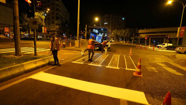 KMBB Ulaşım Hizmetleri Dairesi Başkanlığı ekipleri Hanefi Mahçiçek Bulvarı, Şekerdere Bulvarı ve Azerbaycan Bulvarında termoplastik yol çizgisi çalışmalarının yanı sıra yaya geçitlerinin de boyama çalışmalarını tamamladılar.