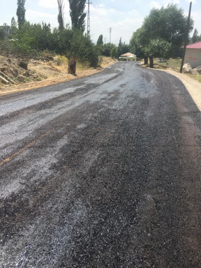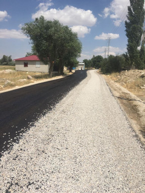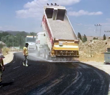 Ekipler 7 m. platform genişliğine sahip olan yolda alt yapı iyileştirme çalışmalarının ardından 1. Kat sathi kaplama asfalt çalışmalarını sürdürüyorlar.
