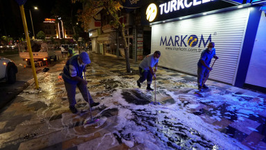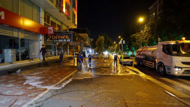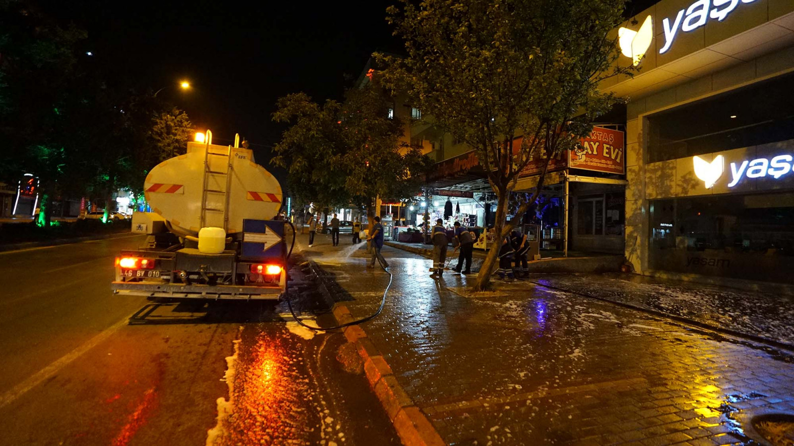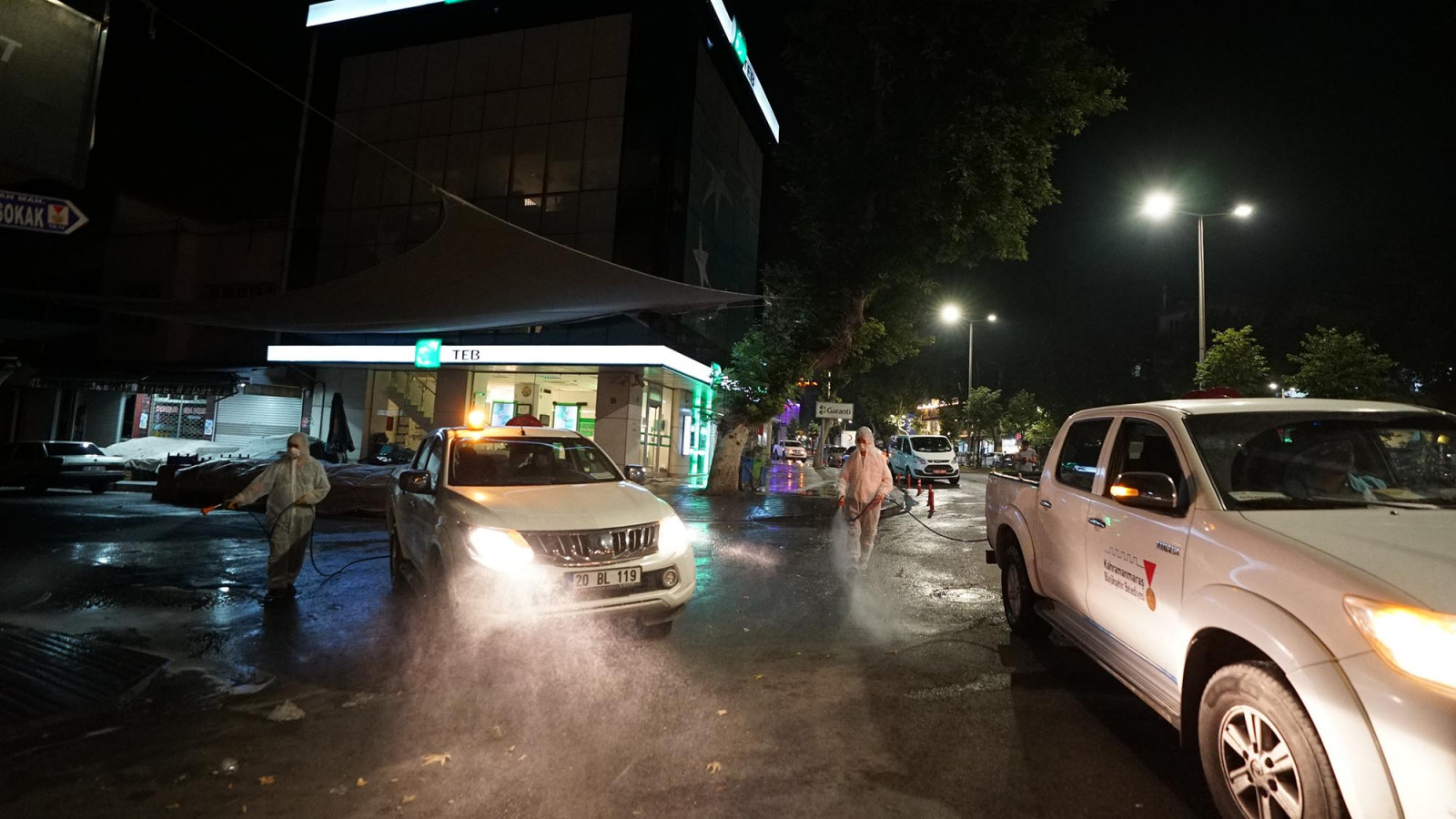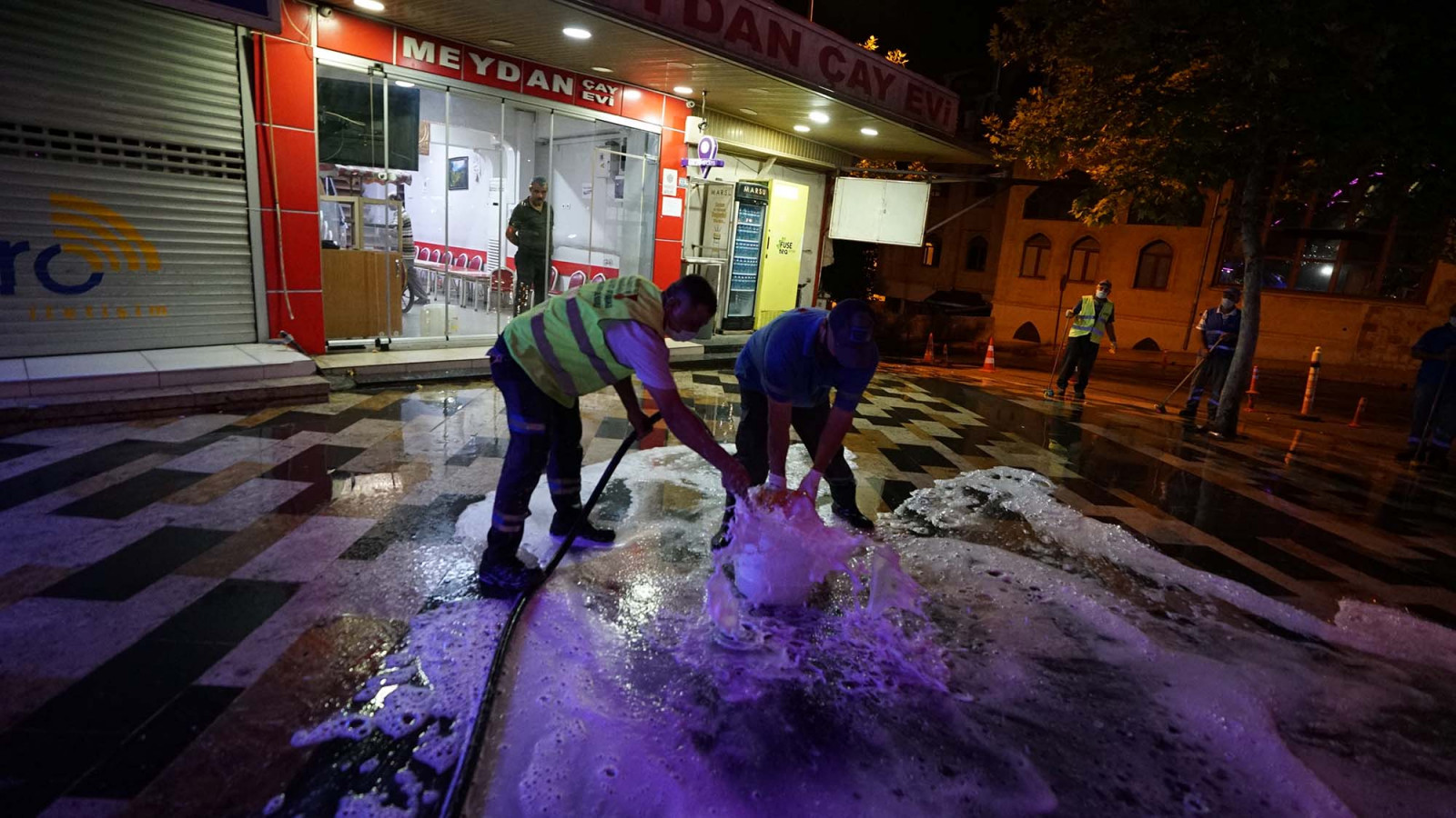 Öte yandan Çevre Sağlığı ve İlaçlama Şube Müdürlüğü ekipleri yıkanarak temizlenen caddelerde dezenfekte çalışmaları gerçekleştiriyorlar.