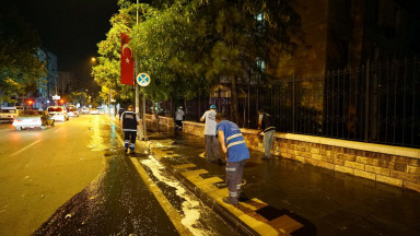 Büyükşehir Belediyesi yaklaşan Kurban Bayramından dolayı caddelerde yaptığı rutin temizlik çalışmalarını yoğunlaştırdı.