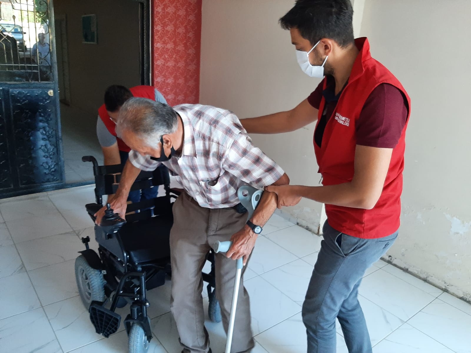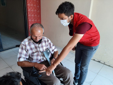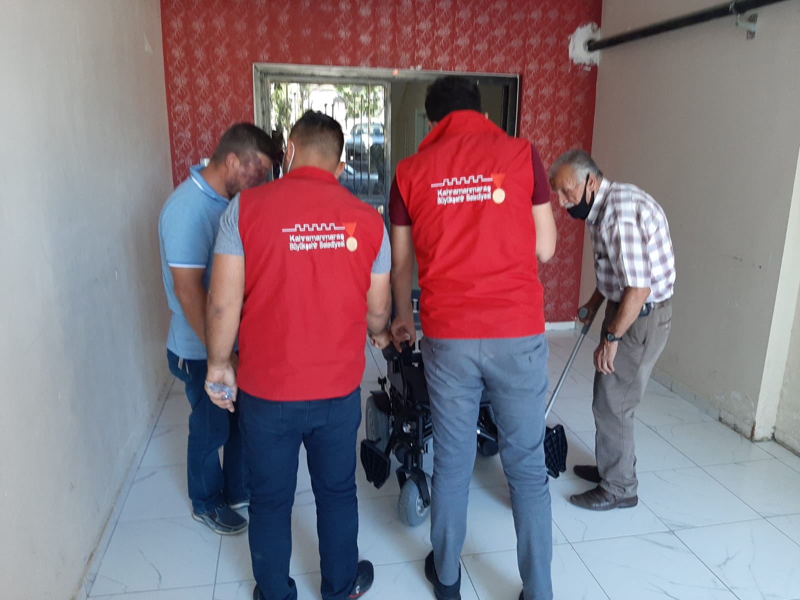 KMBB Kuzey İlçeler Dairesi Başkanlığı ile Sağlık ve Sosyal Hizmetler Dairesi Başkanlığı ekipleri Afşin İlçesi Afşinbey Mahallesinde yüzde 81 engelli olan Hacı Ali Bozkuş’a akülü araç hediye etti.